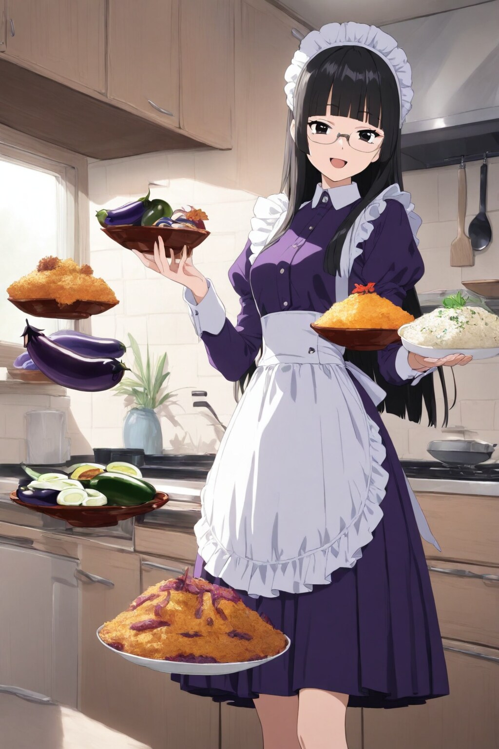 🦉るか子「舞さん~♪ まずは ナスの天ぷら、ナスの肉詰め、ナスのお浸し、ナスの浅漬け です♪ モリモリ食べちゃって ください♪」😄✨