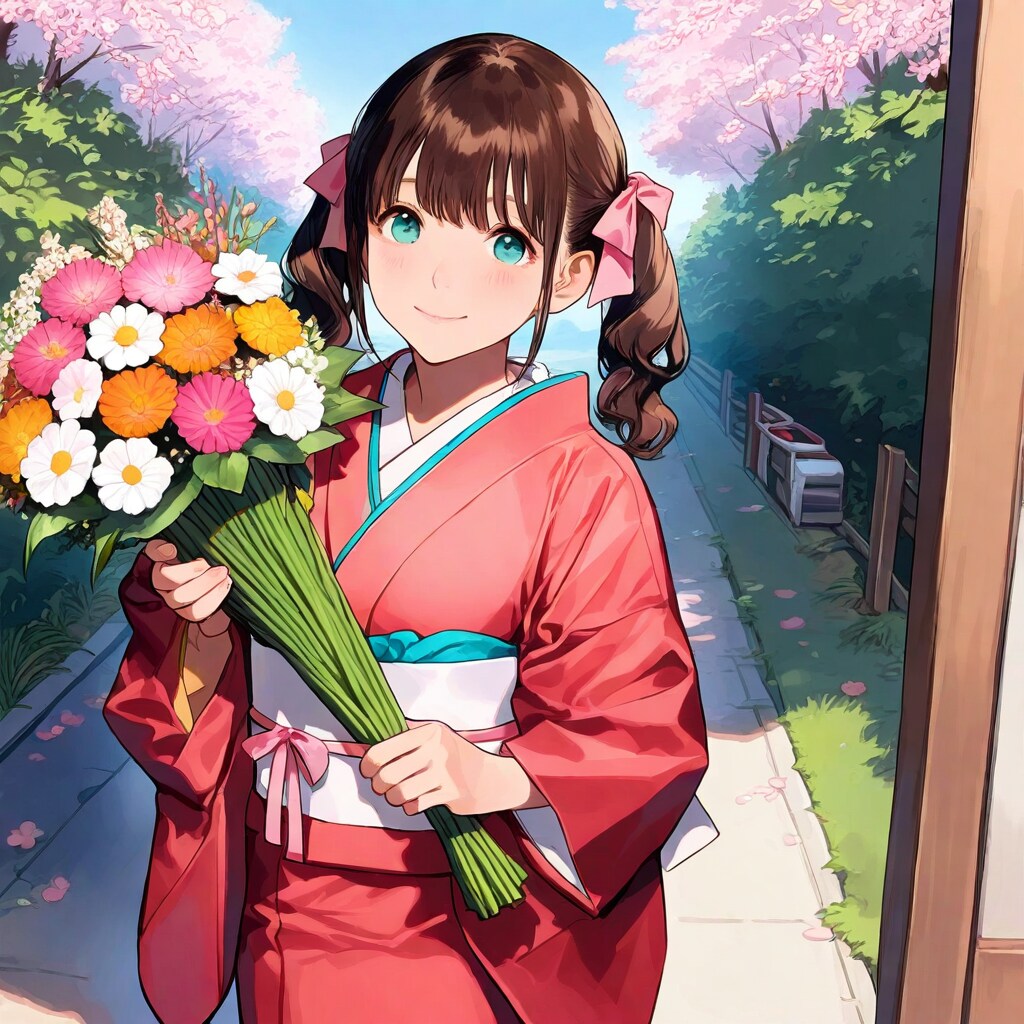 自分に関わる企画に参加してくれた皆様に、感謝の花束を贈る準備をしているはるかちゃんをイメージしてみました