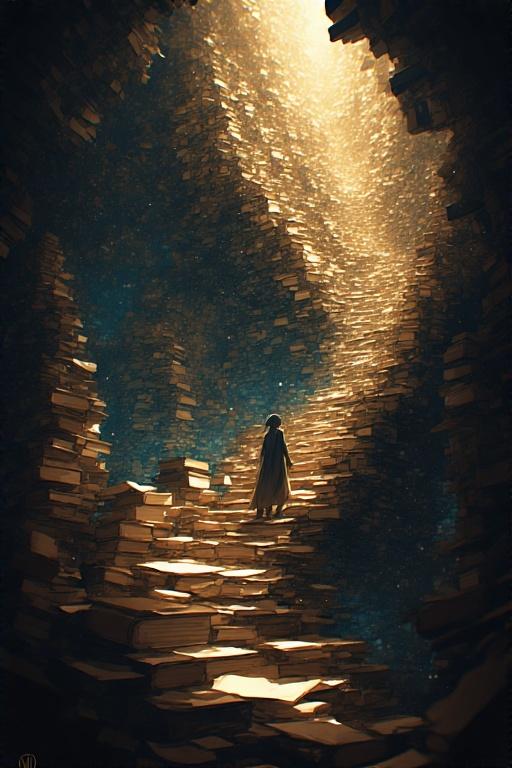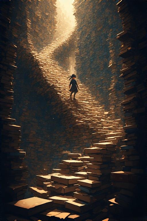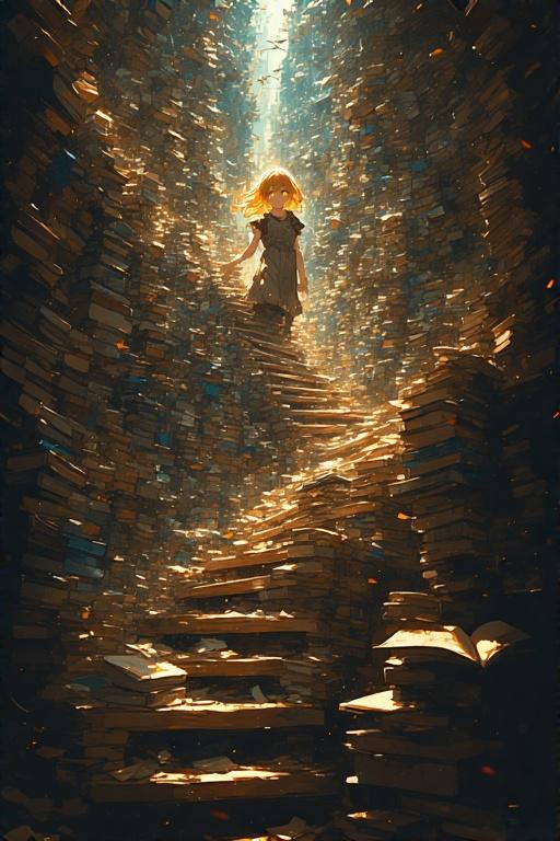 ちちぷい生成では積み重ねた本の階段が再現できてないな。室内画っぽい