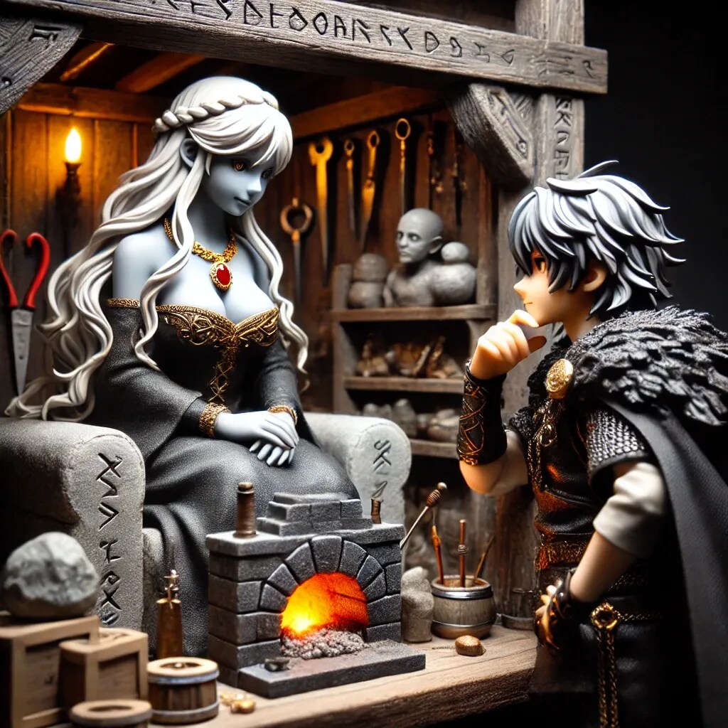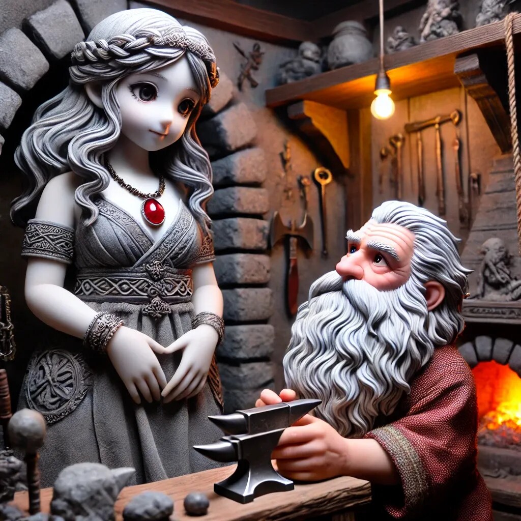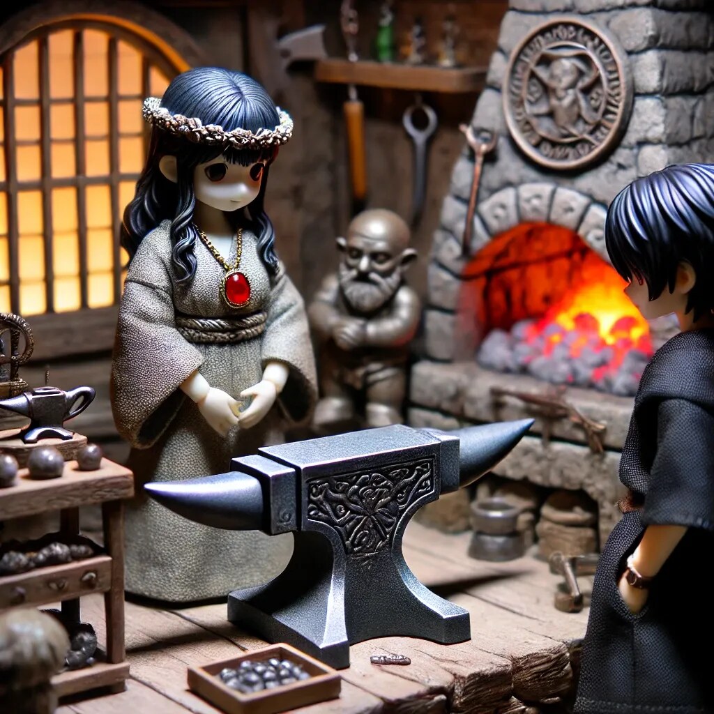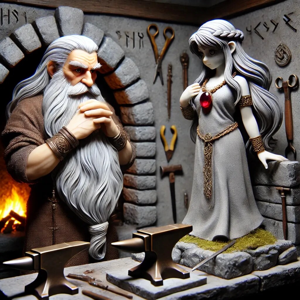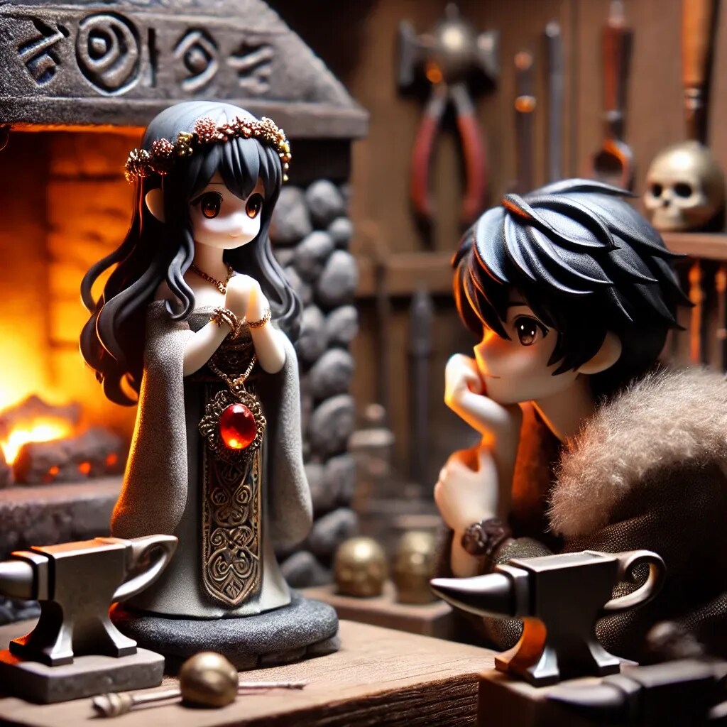 オグマは、乙女像に赤い宝石の首飾りをかけていた。