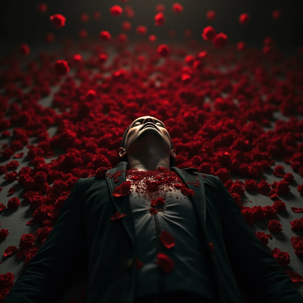SeaArtでバラの殺し屋みたいなテーマで血をバラにできないかと試行錯誤の結果。投稿できたはず。