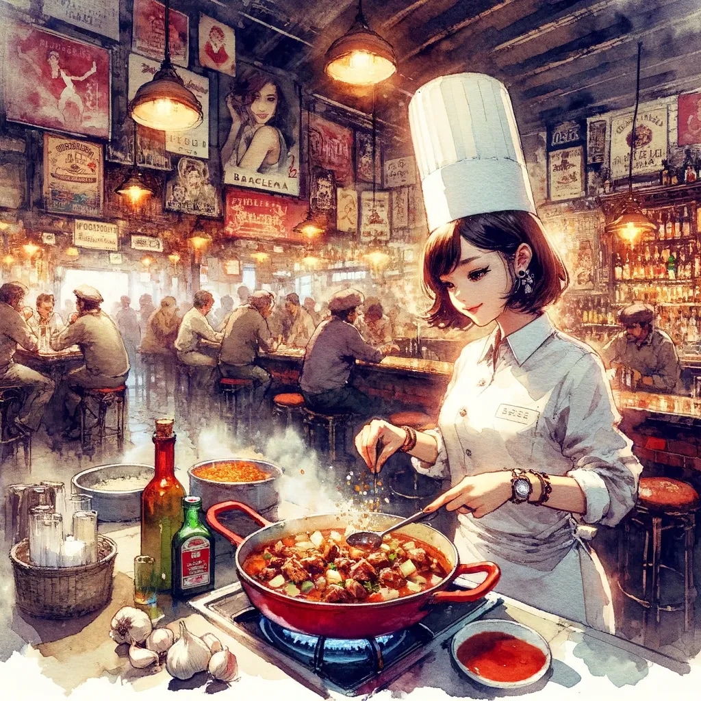 牛肉とポテトを特製のトマトチリソースで煮込んだアヒージョ