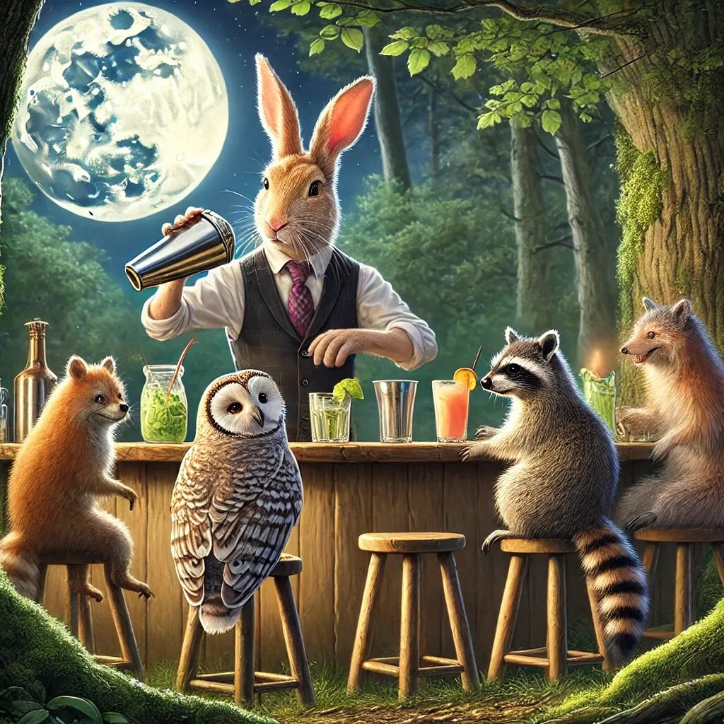 AIさん発案の動物達の月見酒