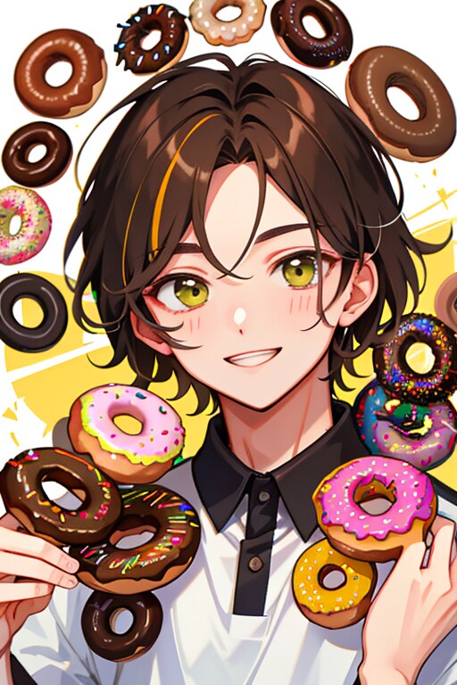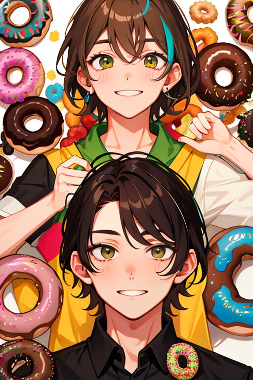 では、ドーナツとブラウン髪の少年をご覧下さいー。