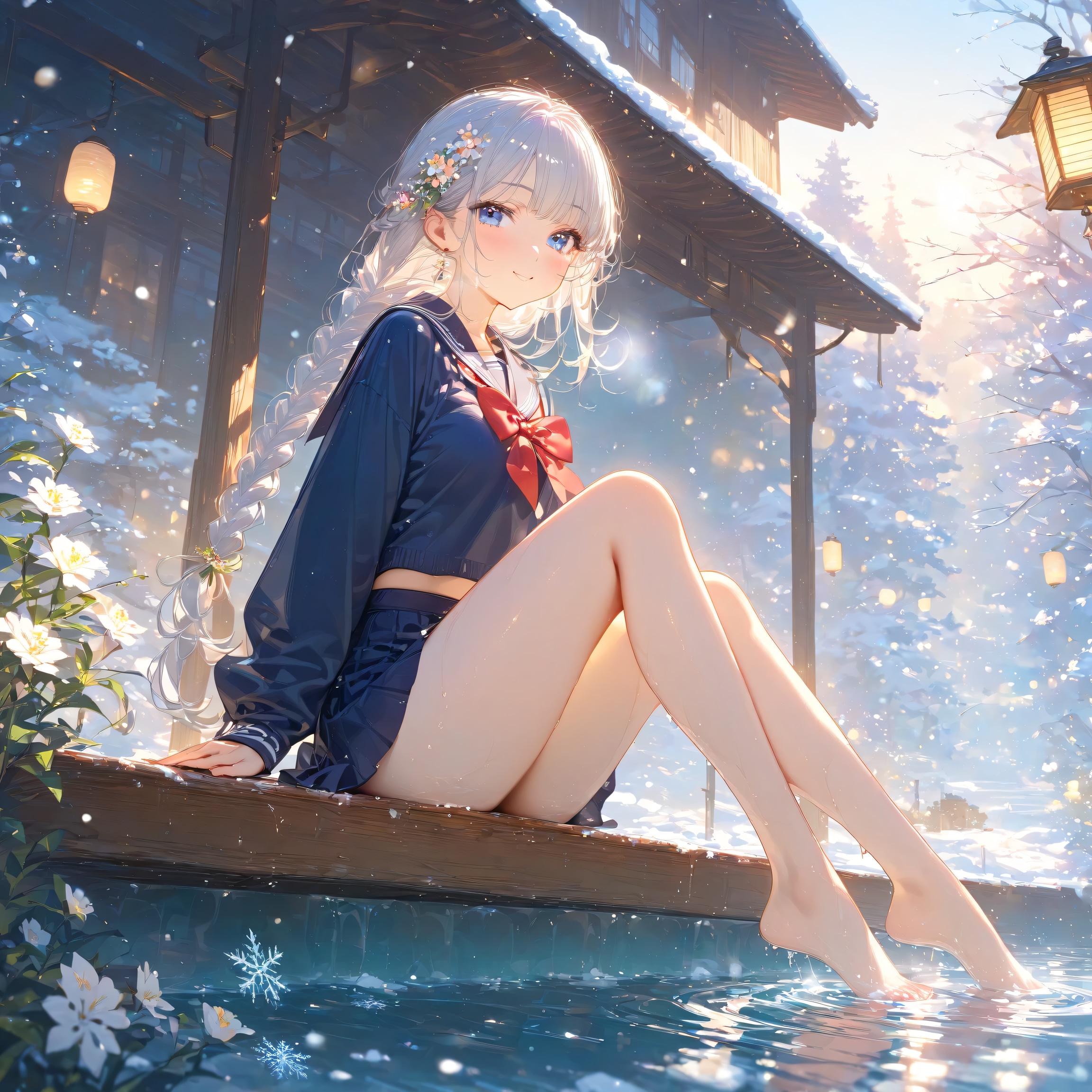 あったか~い♪あなたもどう? 真冬日と足湯と少女