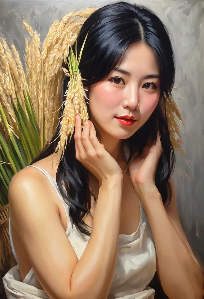 秋に向けて「稲穂を持った女性」のイラストを出したいのですが、稲穂は英語で「ear of rice」。