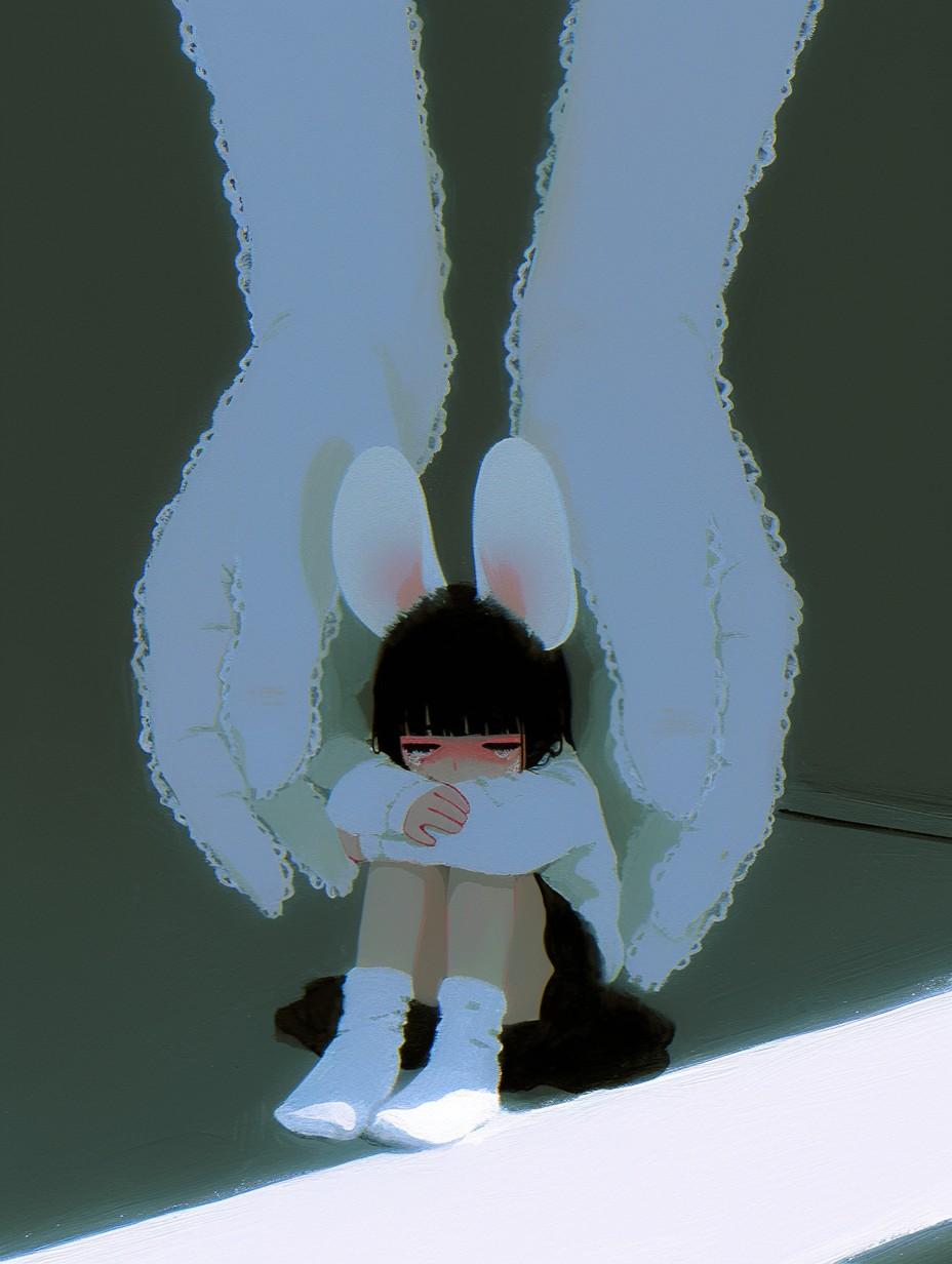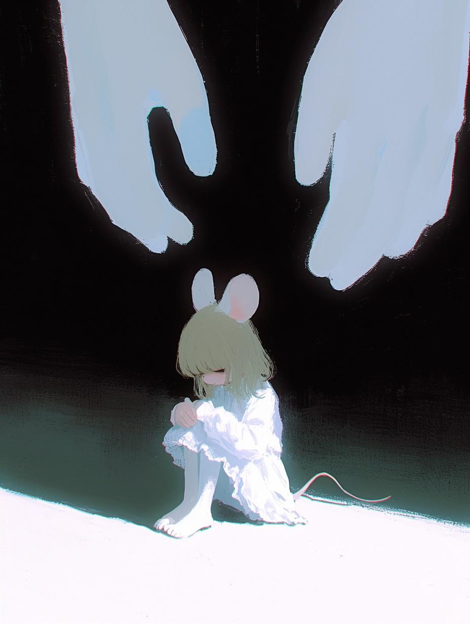 苦しくて閉じこもって壁を作る…というイメージで繭にしたのですが、繭の判定がうまくいかないようで、カーテンレースに包まる子になりました笑