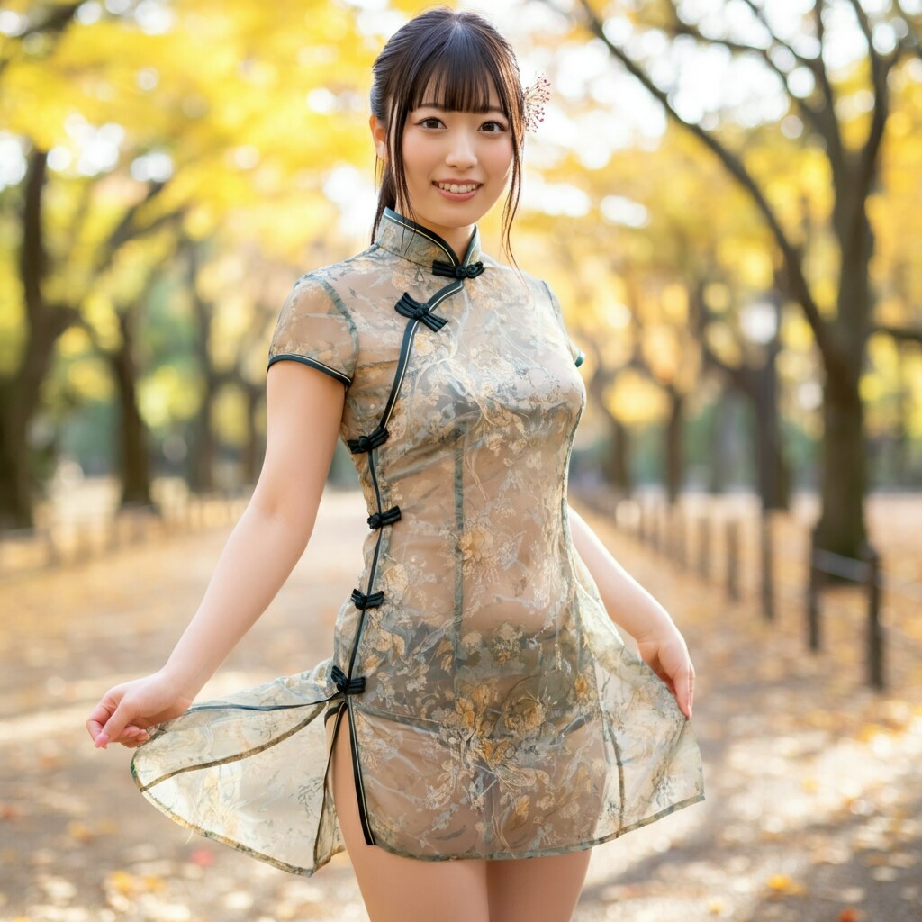 「The Cheongsam is a sheer mini dress.」と意地悪なプロンプトを書いてみる。