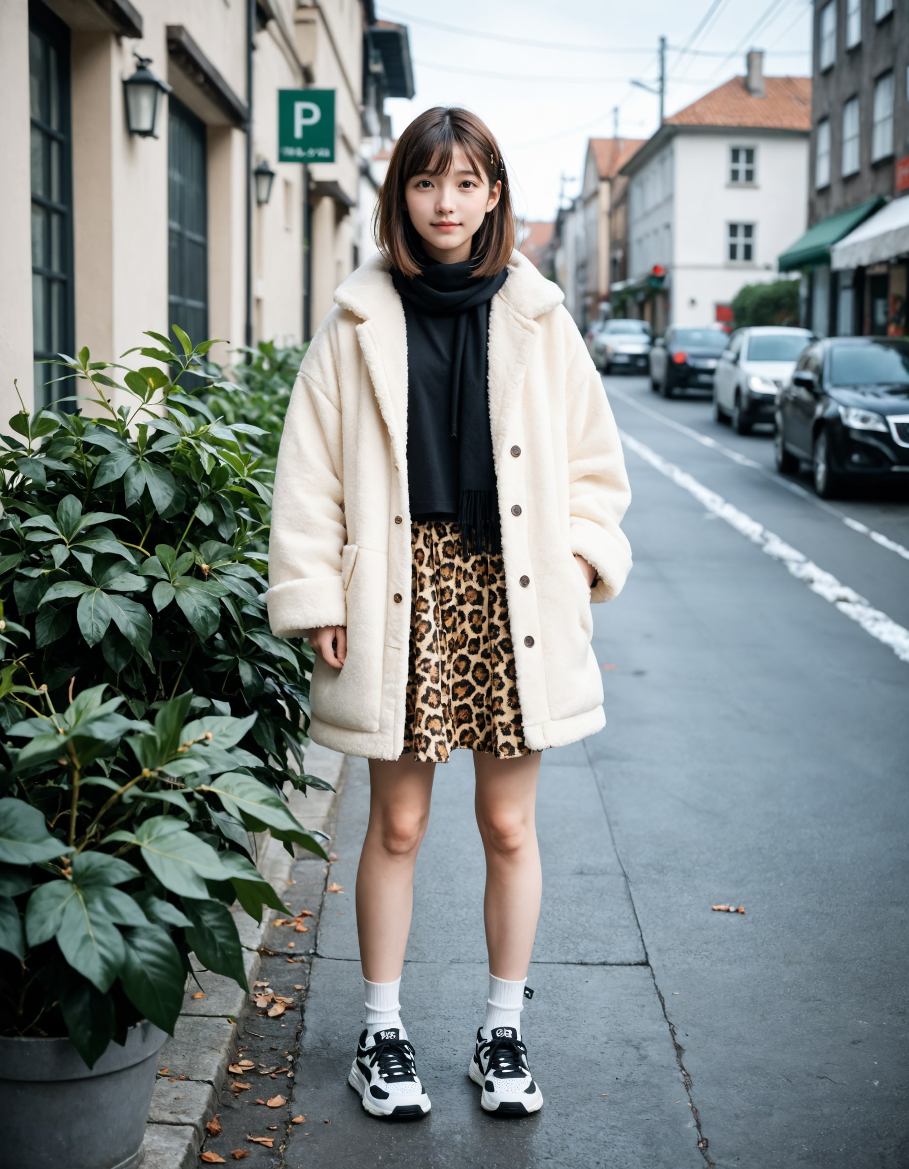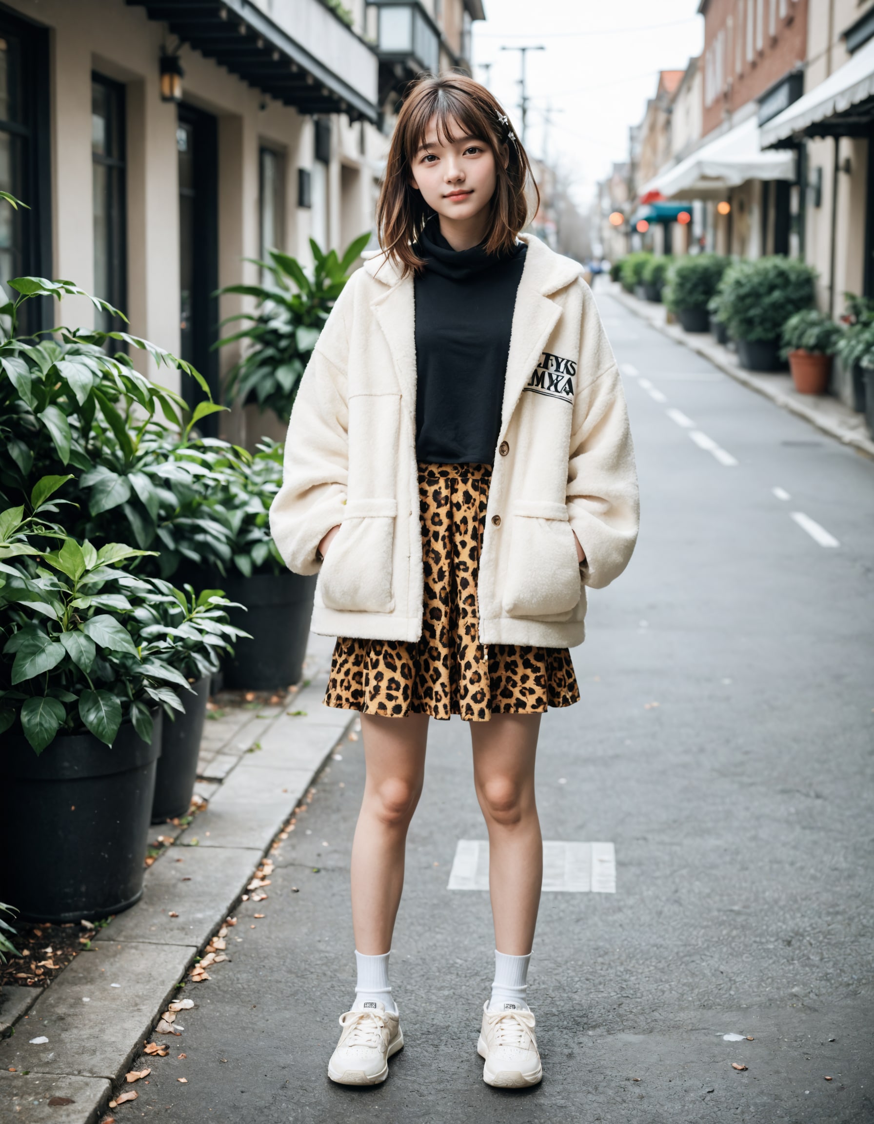 ファッションわからないので画像からプロンプト起こし(ヒョウ柄)。