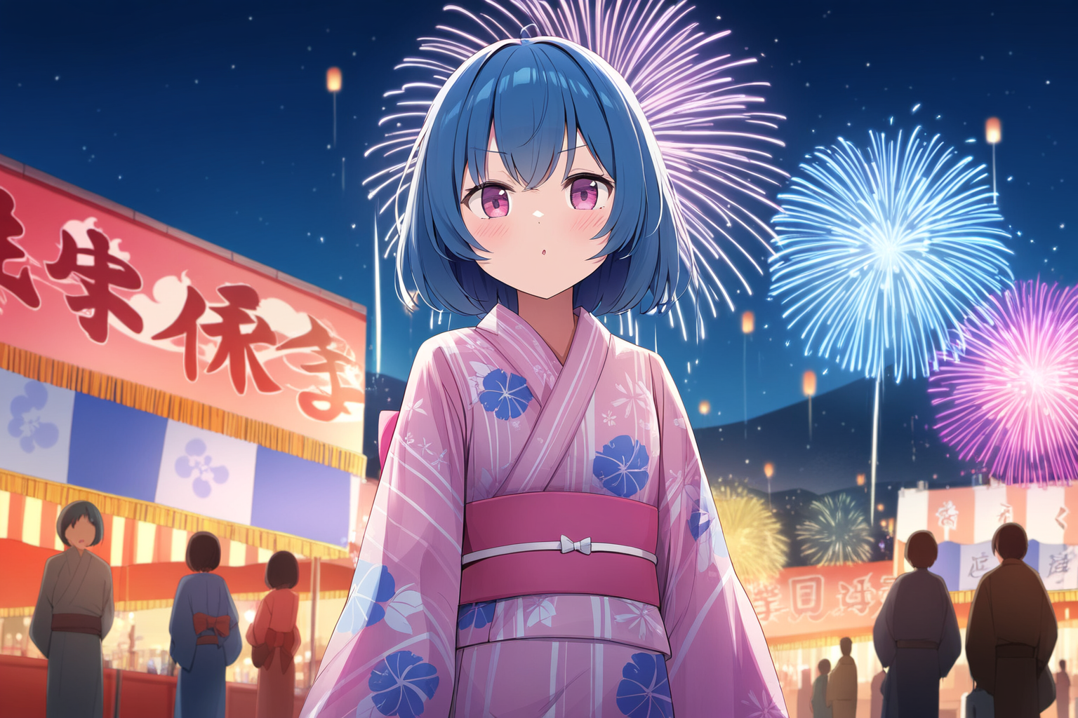 かおりちゃんは浴衣姿でも帰りにゲームセンターでビデオゲームをプレイしたり、ラーメン屋で特盛ラーメンを食べに寄ったりしてます。