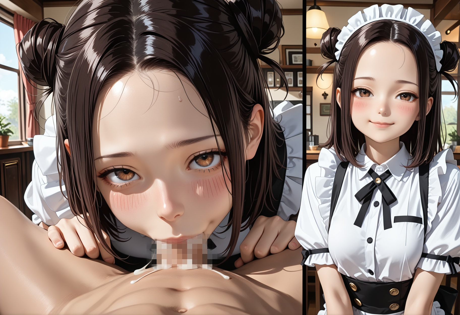 かわいいおでこが見たくなったので、見やすくなるためにフェラの構図と共に生成しただけ