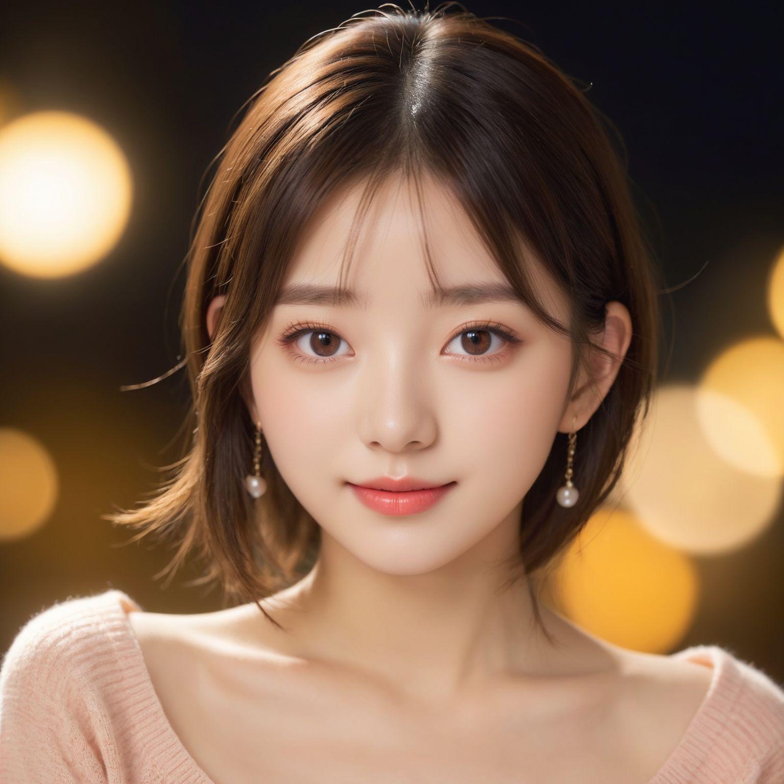 胸の開いたセーターを着て夜の街にいる18歳の美少女のポートレートを描いてみました。