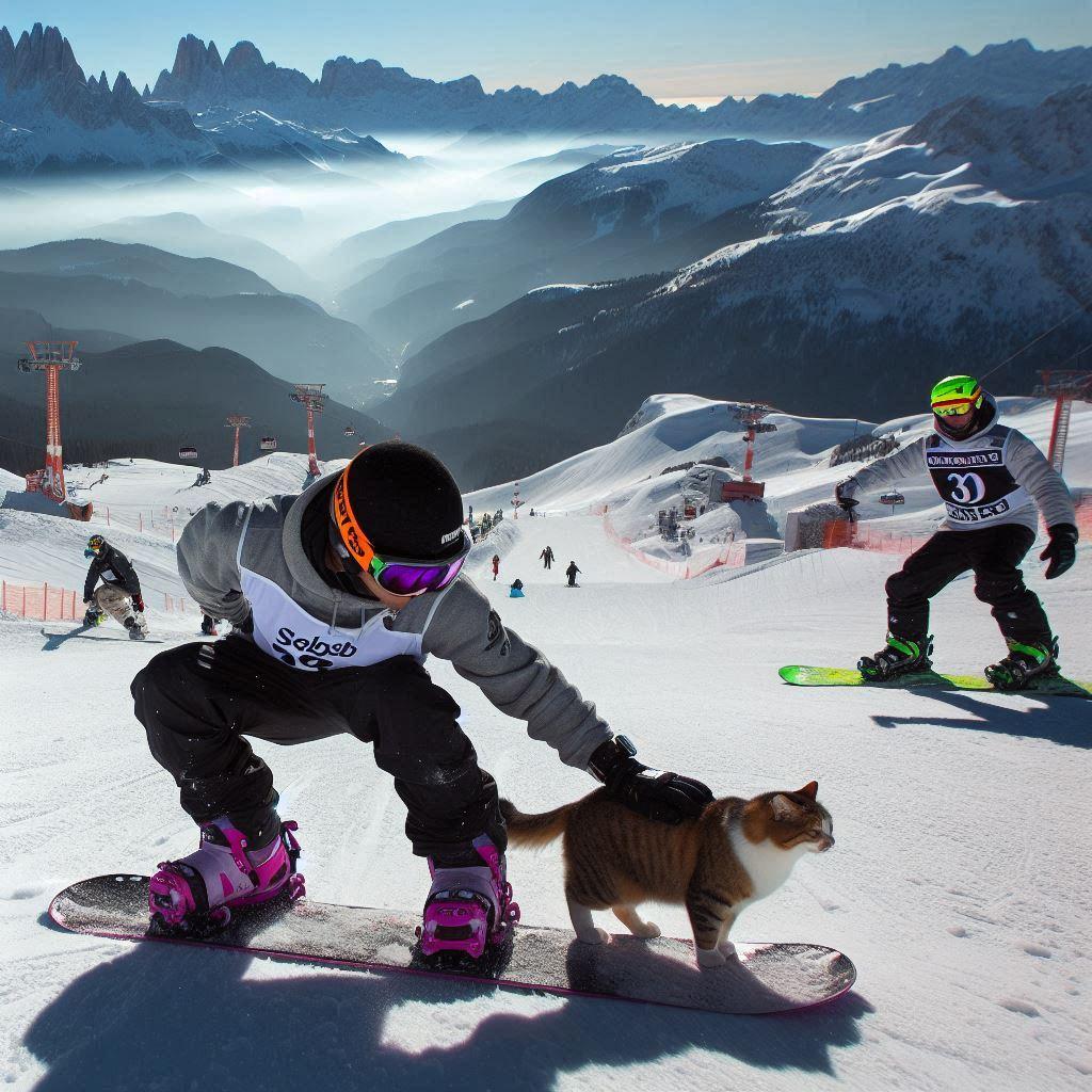 高山でスノーボードをしながらねこ様を可愛がる競技