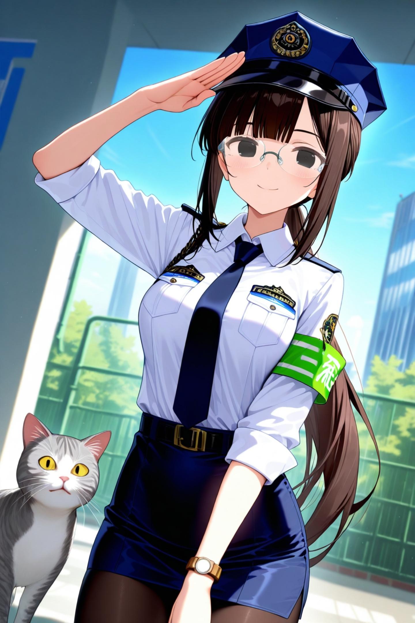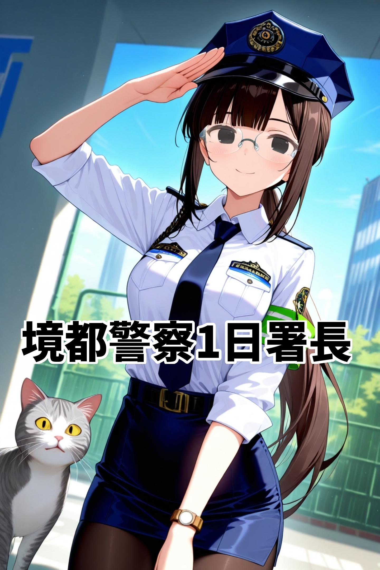 ことから、阿龍田警察1日署長として元気いっぱいに敬礼する。