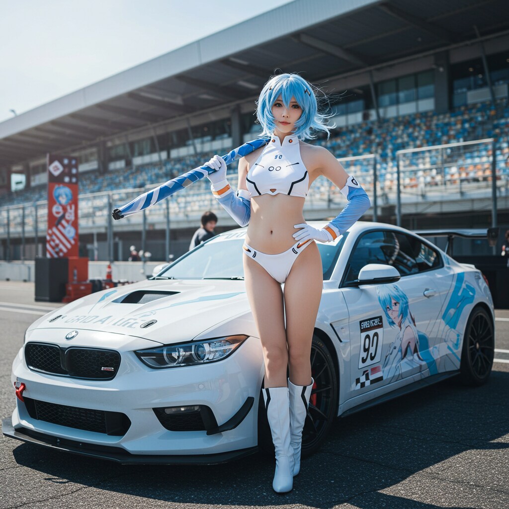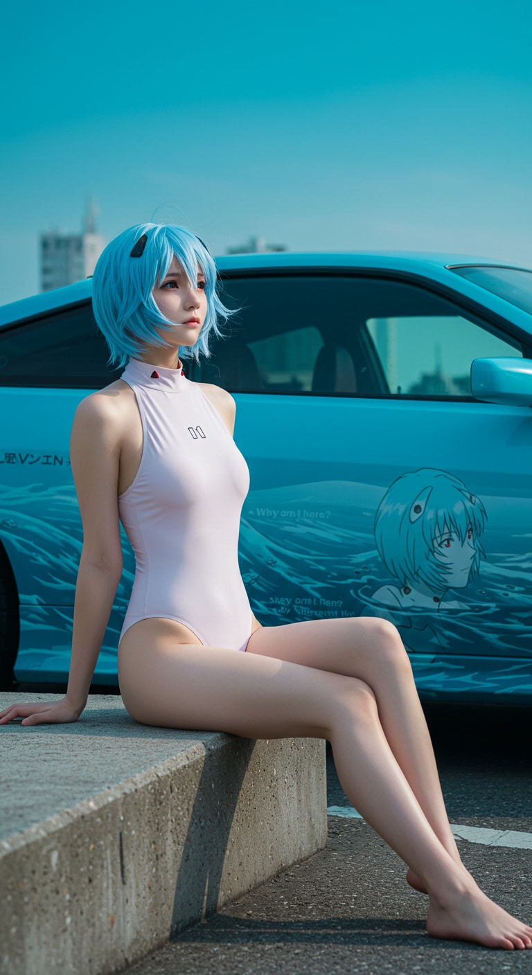 「静寂の青、駆け抜ける幻想—痛車とともに」