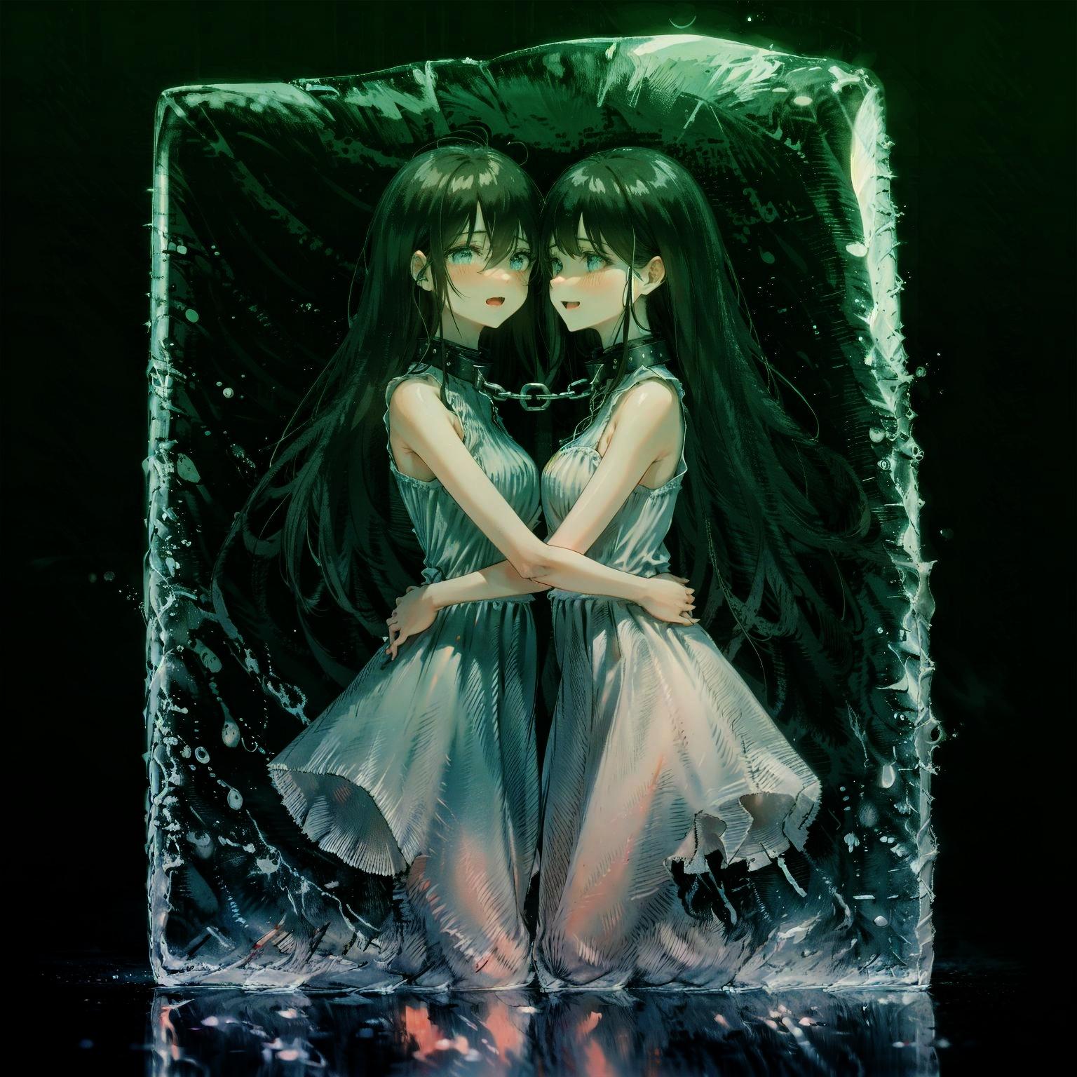 そいつを薄暗い非常灯の灯りで透かしてみると、中には美女が二人、氷漬けになっているっていうのさ。