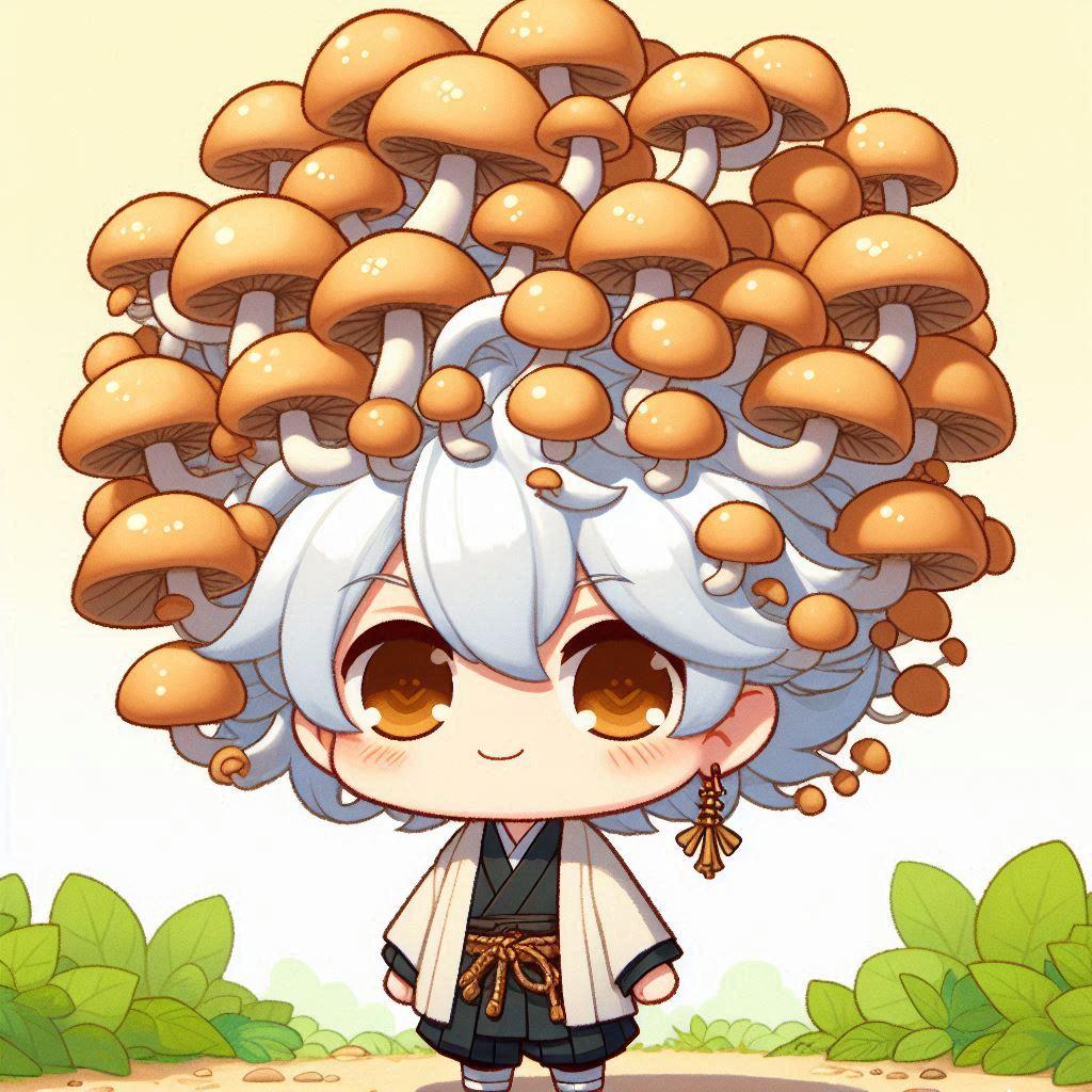 頭のキノコはただのキノコではなく、冬虫夏草です。