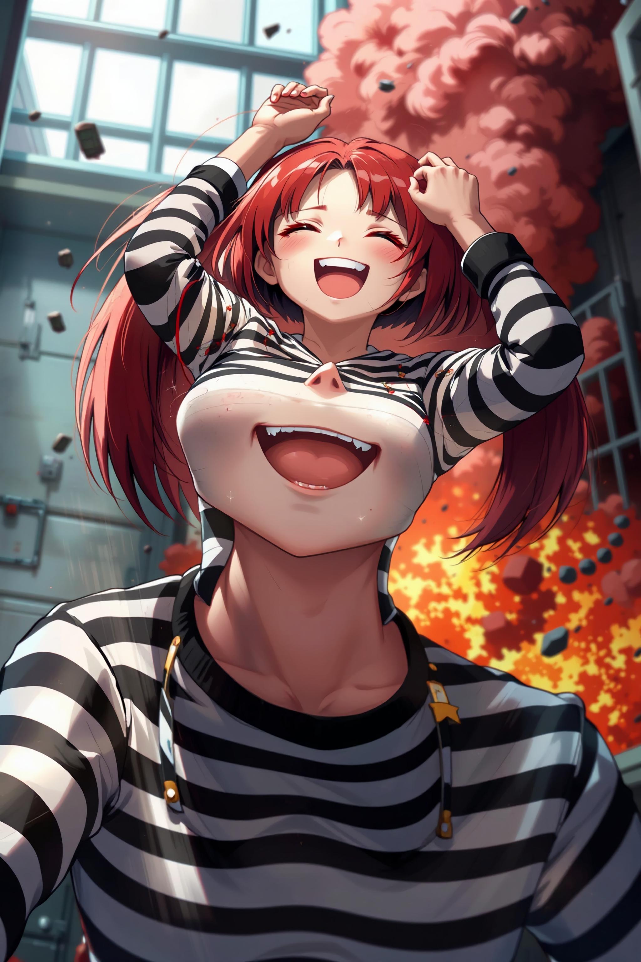 jacket partially removed, heart in eye, burnt clothes, holding fishing rod, kanji, doujin cover, pentagram, tape gag, adjusting headwear, red socks, friends, cloud print, coke-bottle glasses, oral invitation, competition school swimsuit, barbell piercing, gradient legwear, prisoner, blood on breasts, wind chime, carrying over shoulder, tape measure, flaming weapon