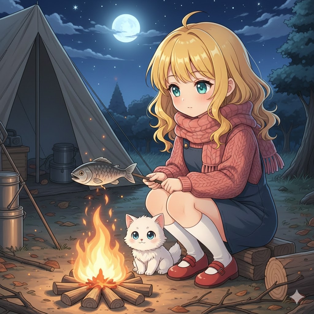 焚火で焼き魚