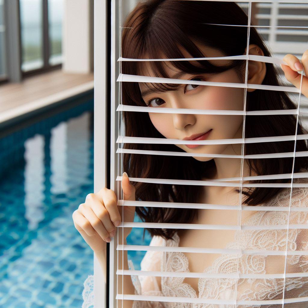 ブラインドとレースのシャツでスケスケを狙ったのです