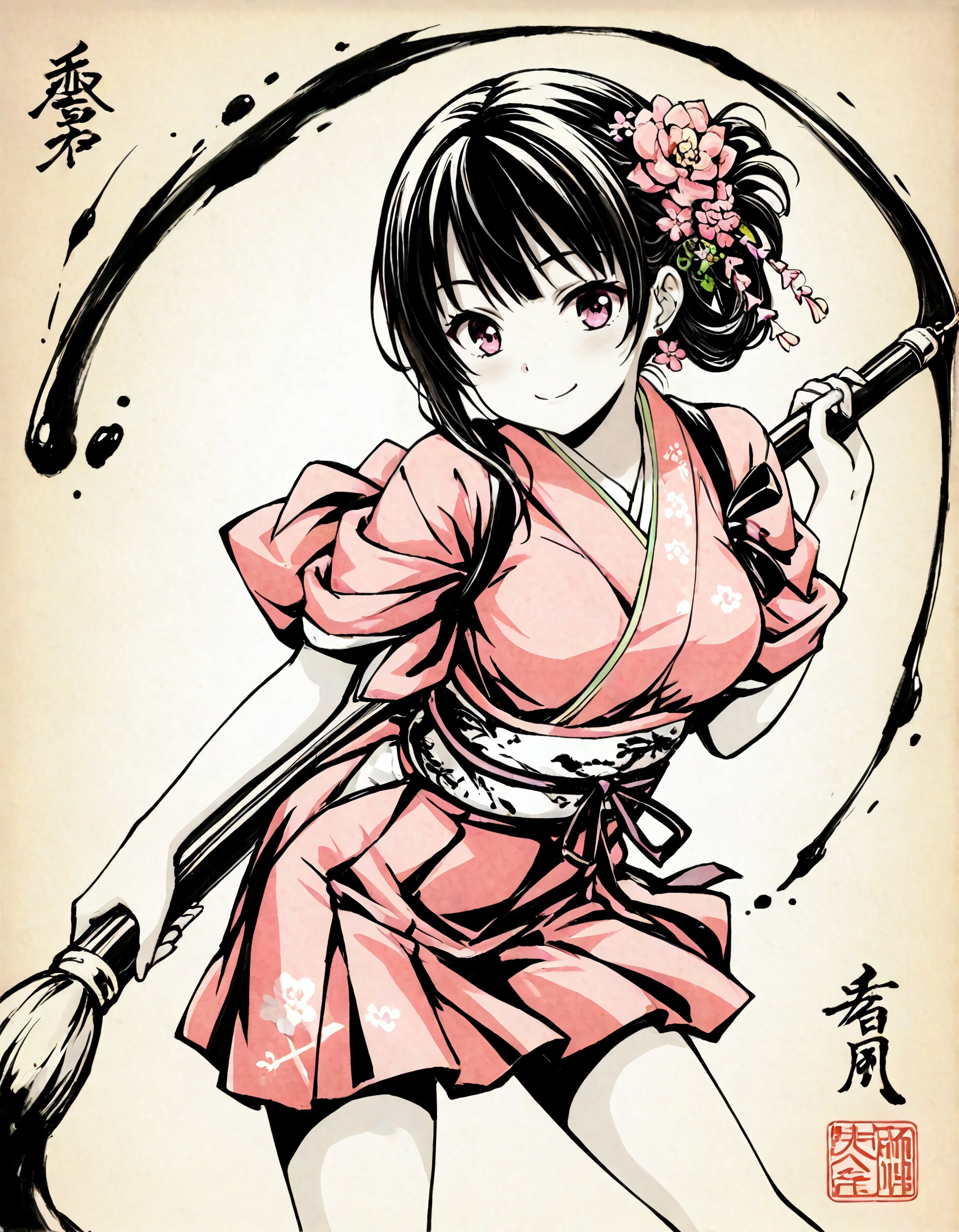 ※和服+筆のイラストのプロンプトを追記。