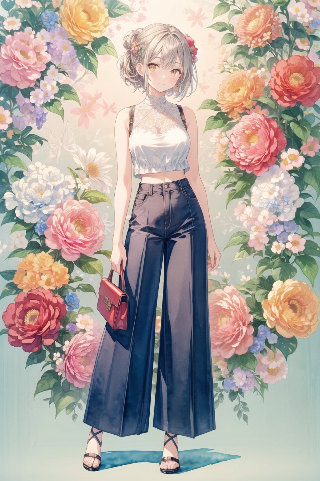 ⑥cropped top, (wide pants:1.3), (high heels:1.2),