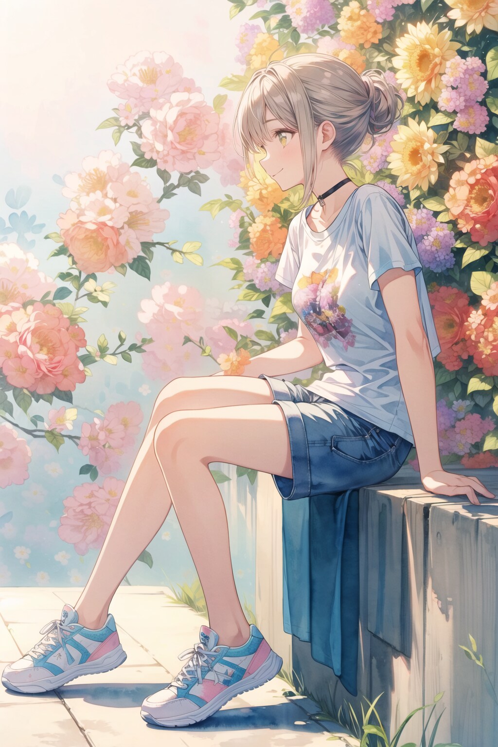 ③(T shirt:1.6), shorts, short sleeves, (sneakers:1.2), choker,