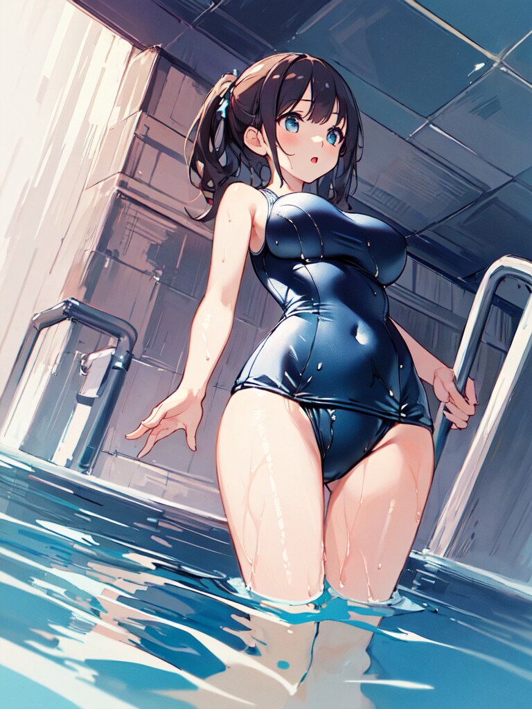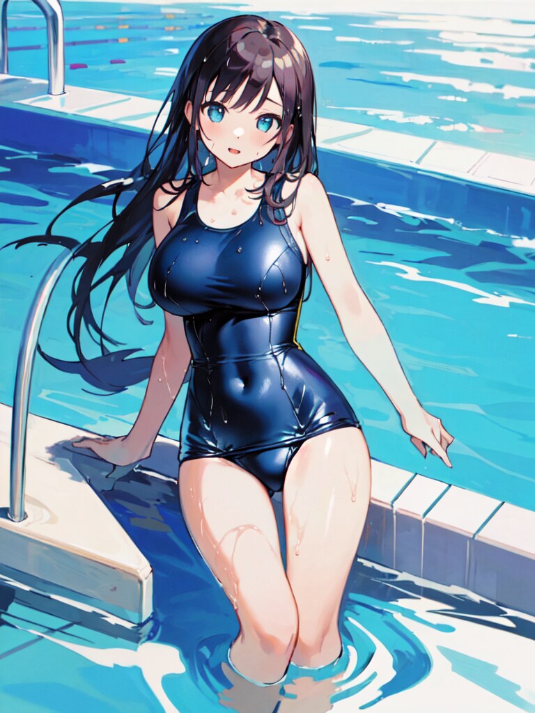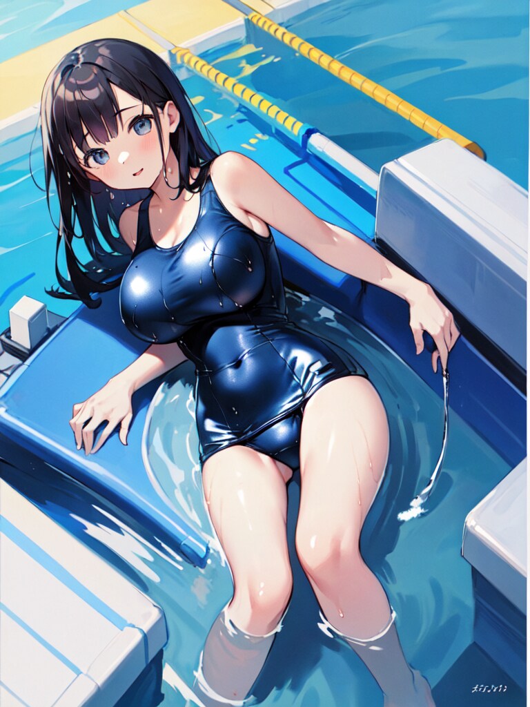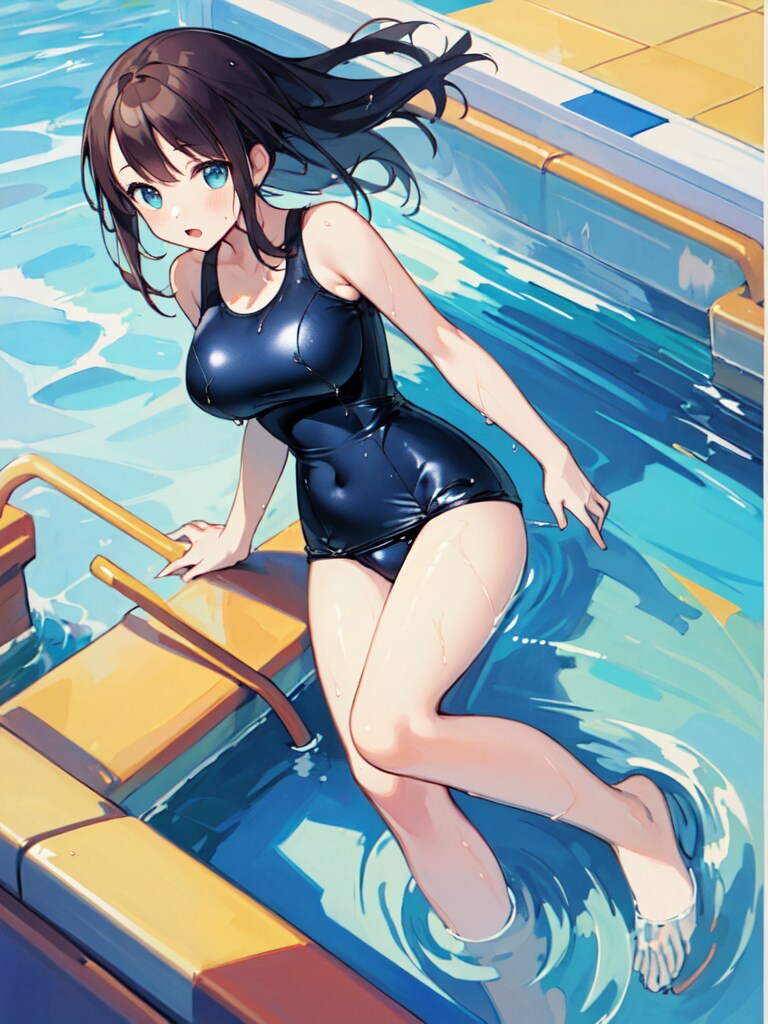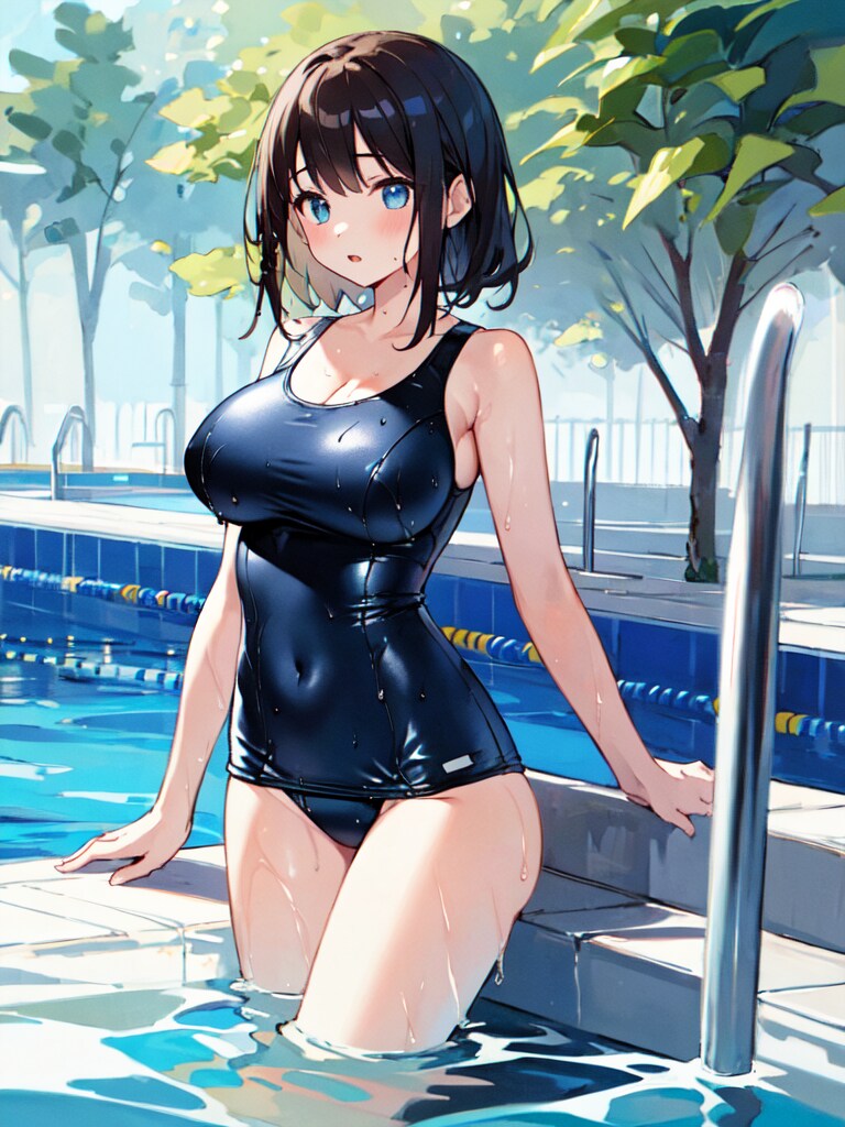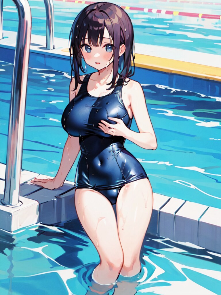 スクール水着といったら紺色の旧型だよね。※Pixaiで生成。