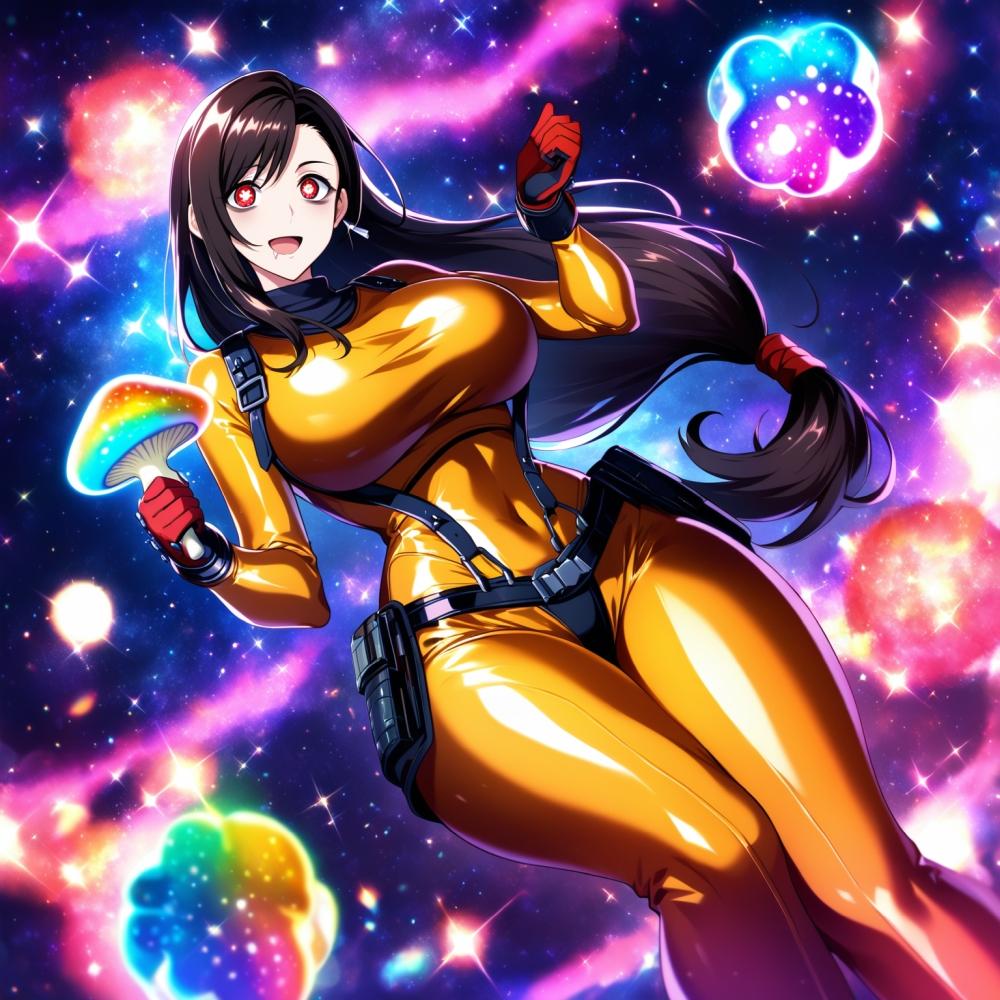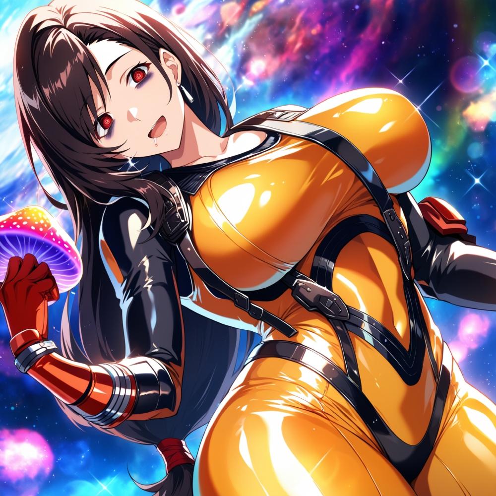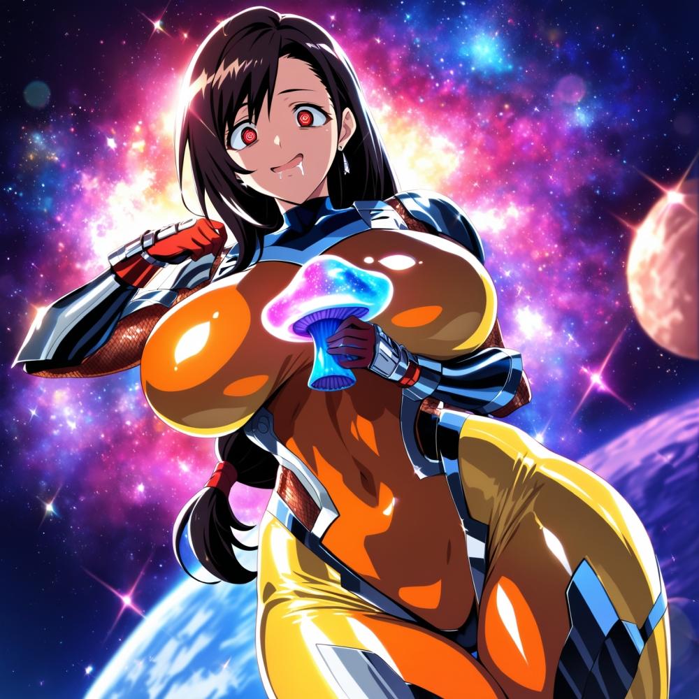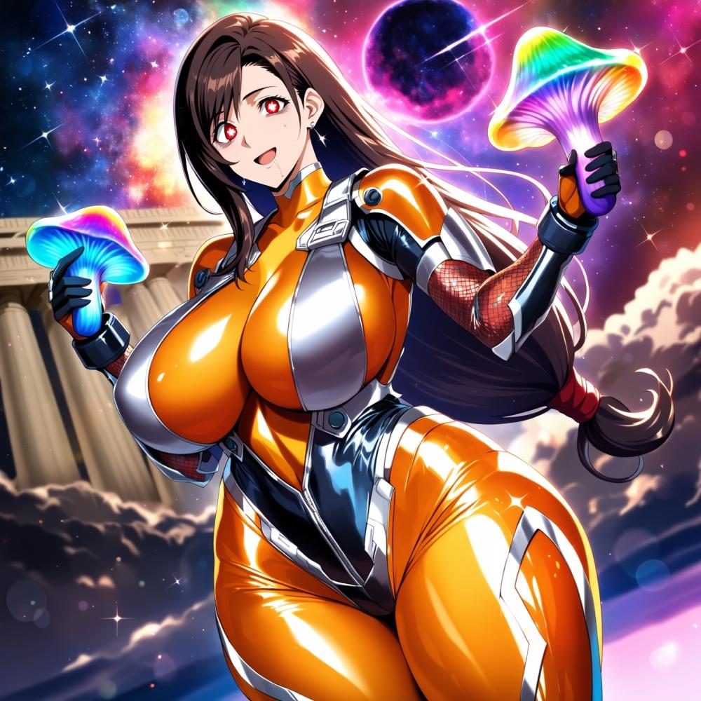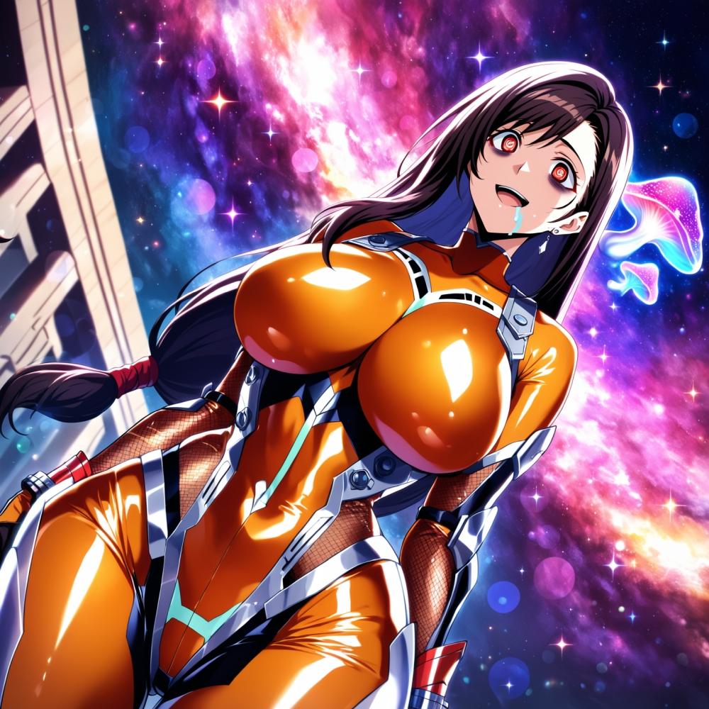 宇宙キノコでキラキラが見えるパイロットスーツコスプレ人妻