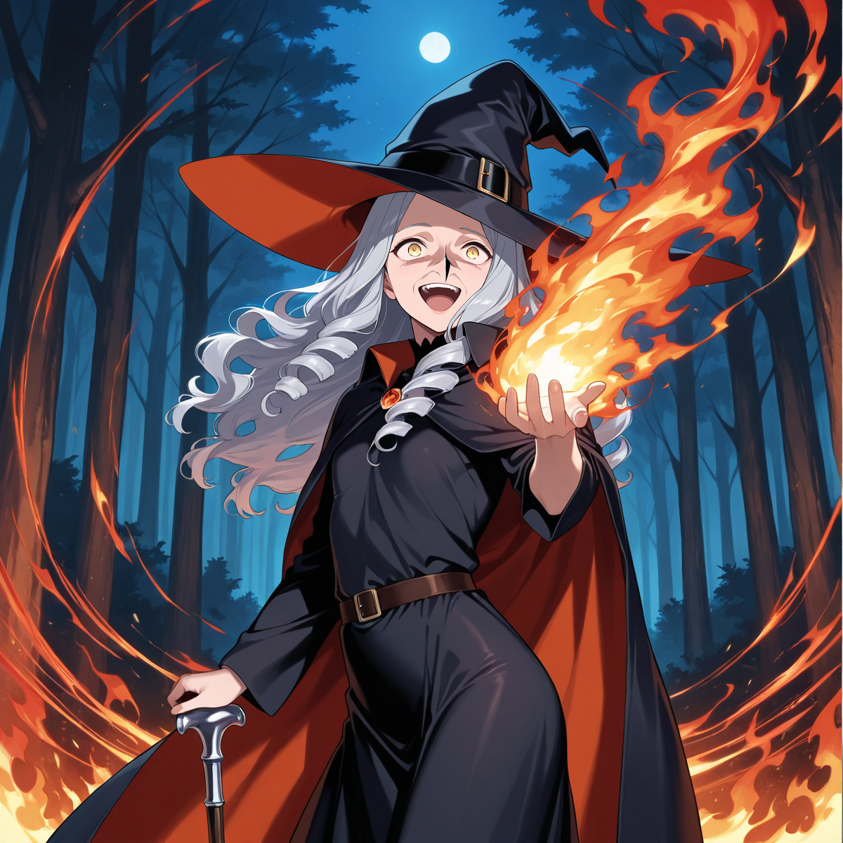 魔女の不気味な笑いが燃え上がる森にこだまする。