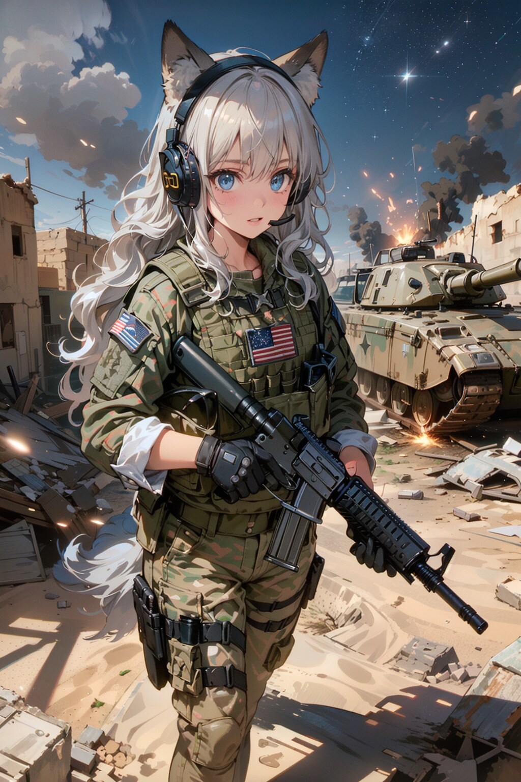 今回はイラク戦争時のグリーンベレー隊員をイメージして作りました✨プロンプトに「US Army」と入れると国籍パッチが付きました🇺🇸迷彩効果を考えると、こういう目立つ色のパッチは不利だと思うかもしれませんが、これはどの陣営に所属しているかを明確にするためで、同士討ちを避けるためには必須です✋ウクライナ戦争においても、ウクライナ兵の腕に国旗と同じ青と黄色の腕章が巻かれているのを見たことがあると思います🇺🇦ロシア人もウクライナ人も同じスラブ系民族のため、加えて旧ソビエト連邦の構成国であったため装備形態も非常に似ているので、パッと見はどちらの兵士か見分けがつかないからです😅