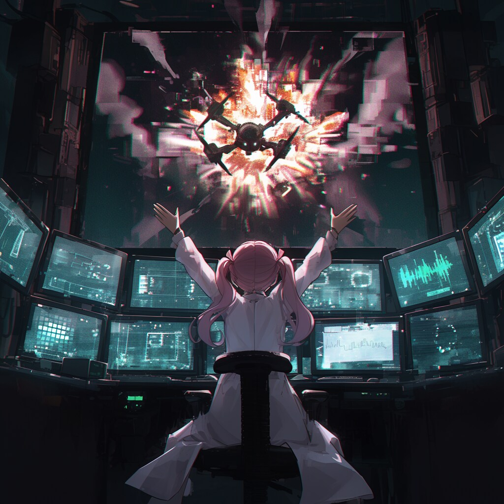 モニターの中で、警備ドローンが木っ端微塵に吹き飛んだ。