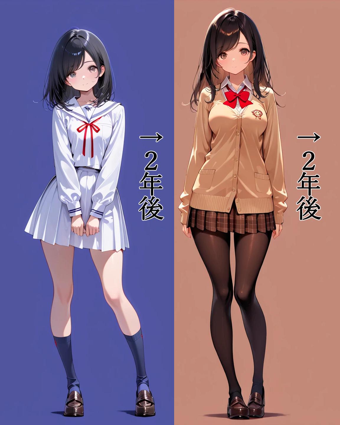 14歳(セーラー服)→16歳(サムネ)→18歳(ブレザー)と構想しています。