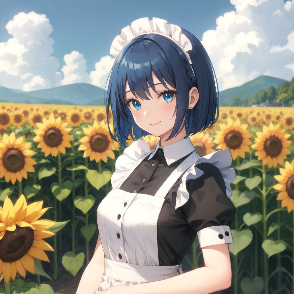 あいちゃんはヒマワリ畑のお手入れに忙しいようです。