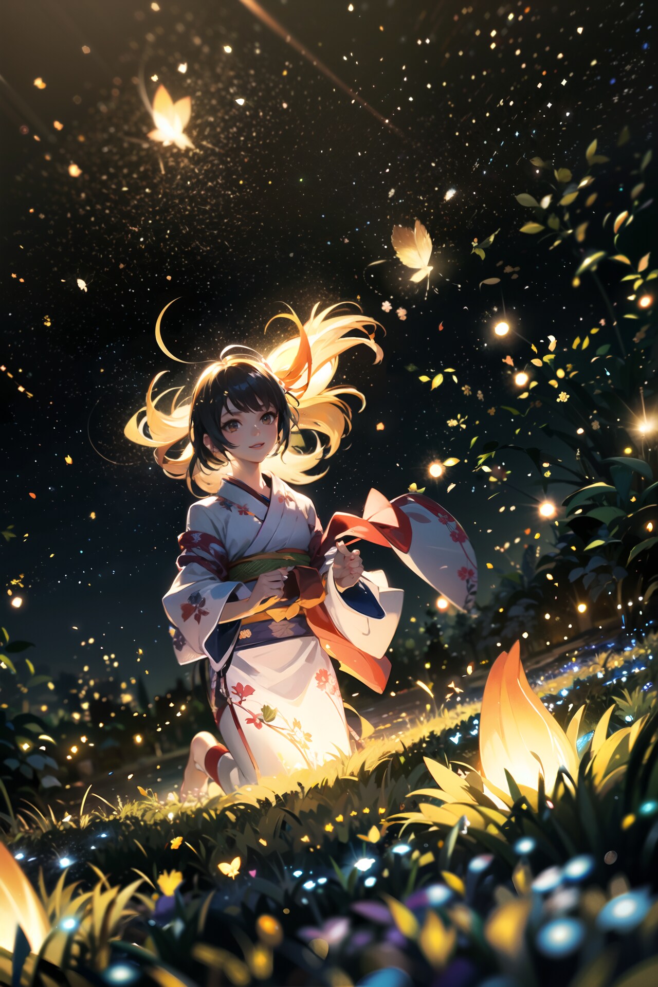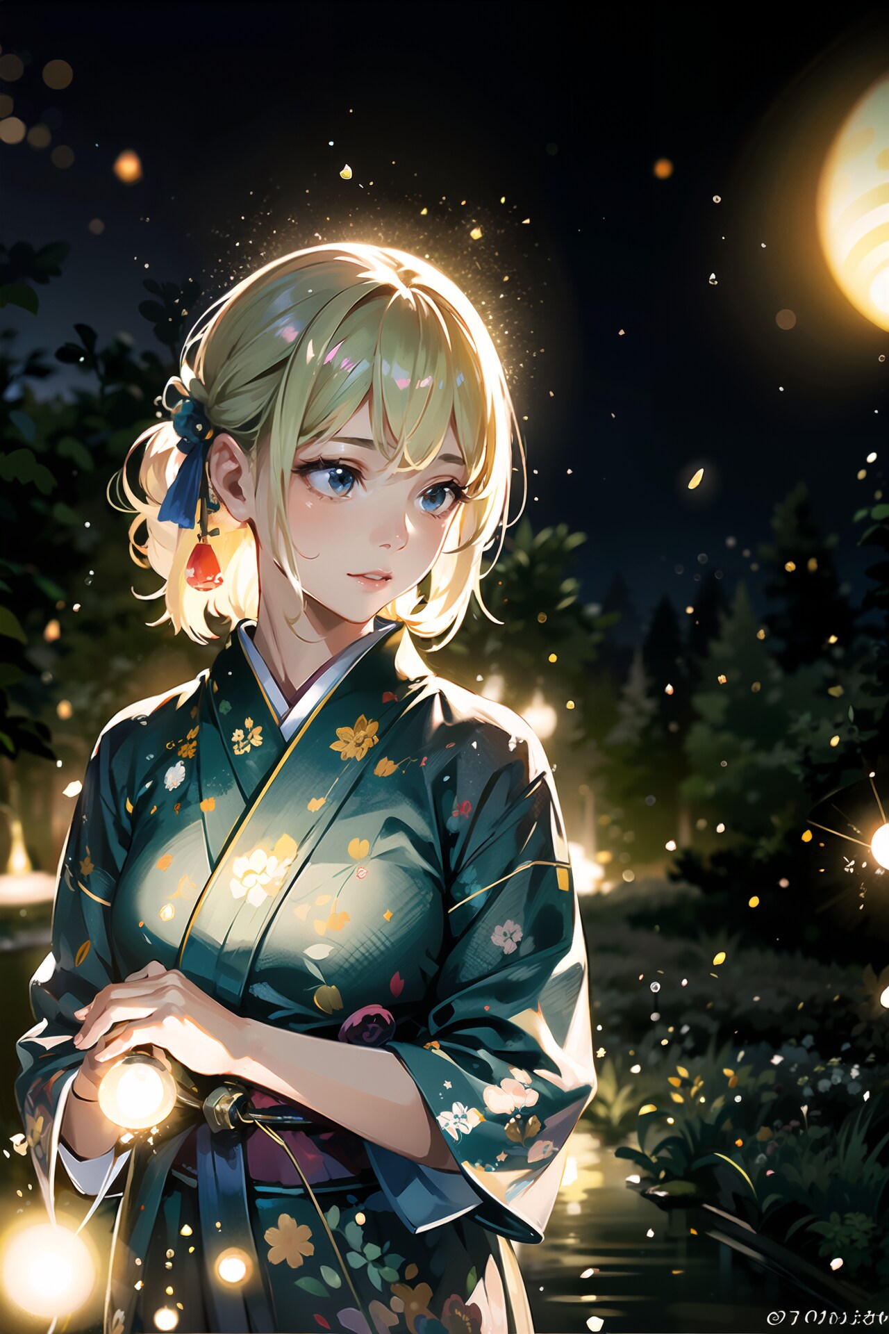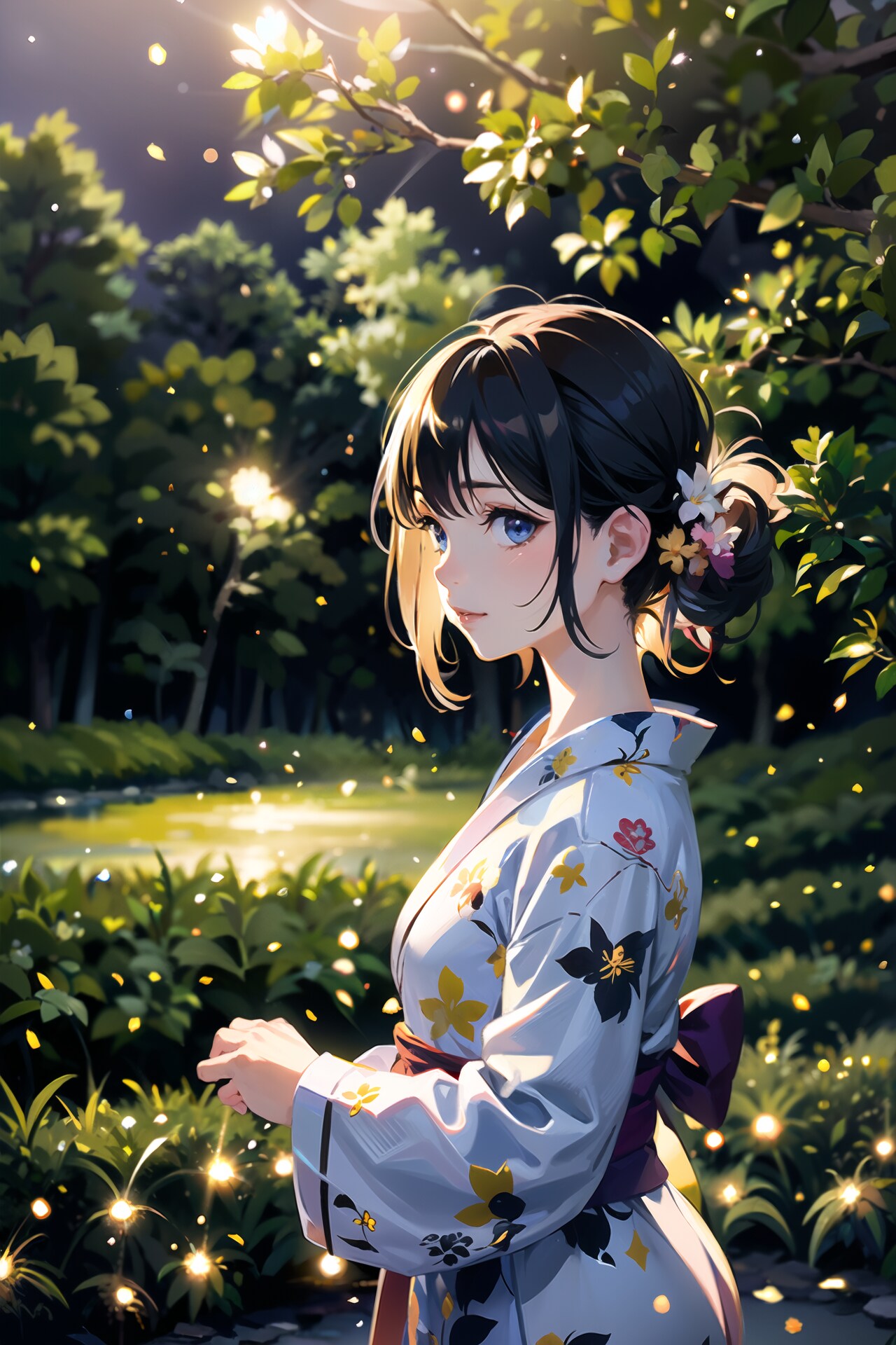 浴衣少女と蛍の光