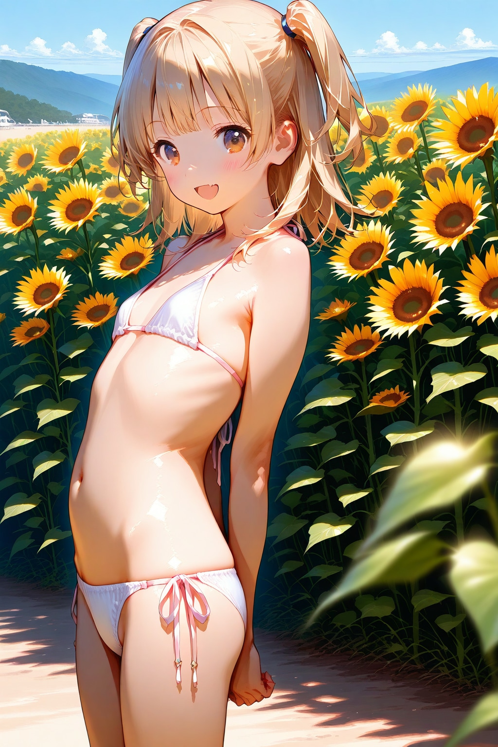 1枚目、ちち生 GRYPHONで生成、背景は海のはずなのにヒマワリ畑!