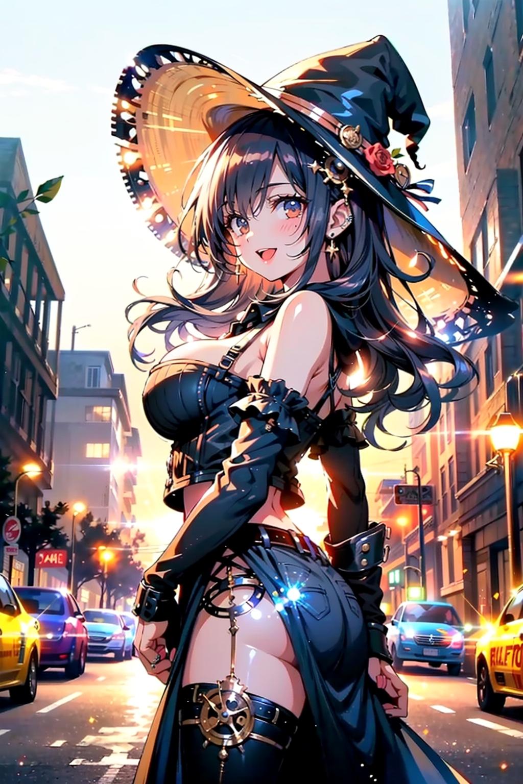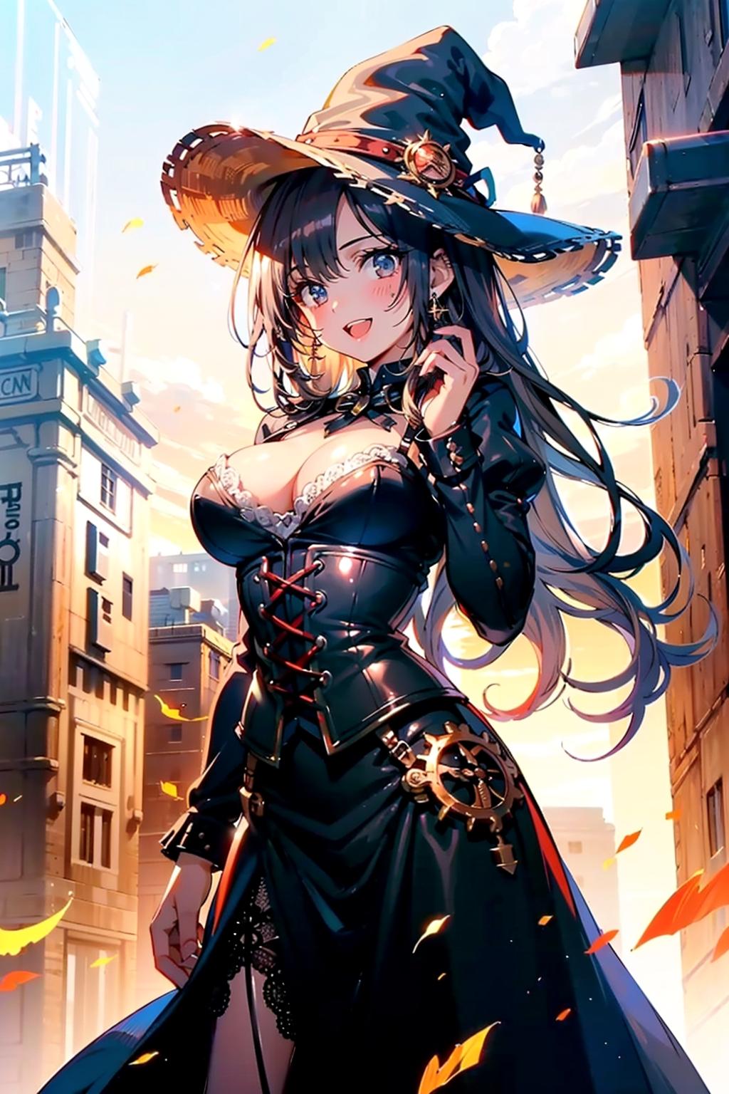 産業革命期の魔女が、未来に憧れ、現在にタイムリープしてきた設定。ぶっ飛んだ衣装と魔女界で笑われていた彼女も、現在は巷の人気者。取材申し込みも殺到です😊