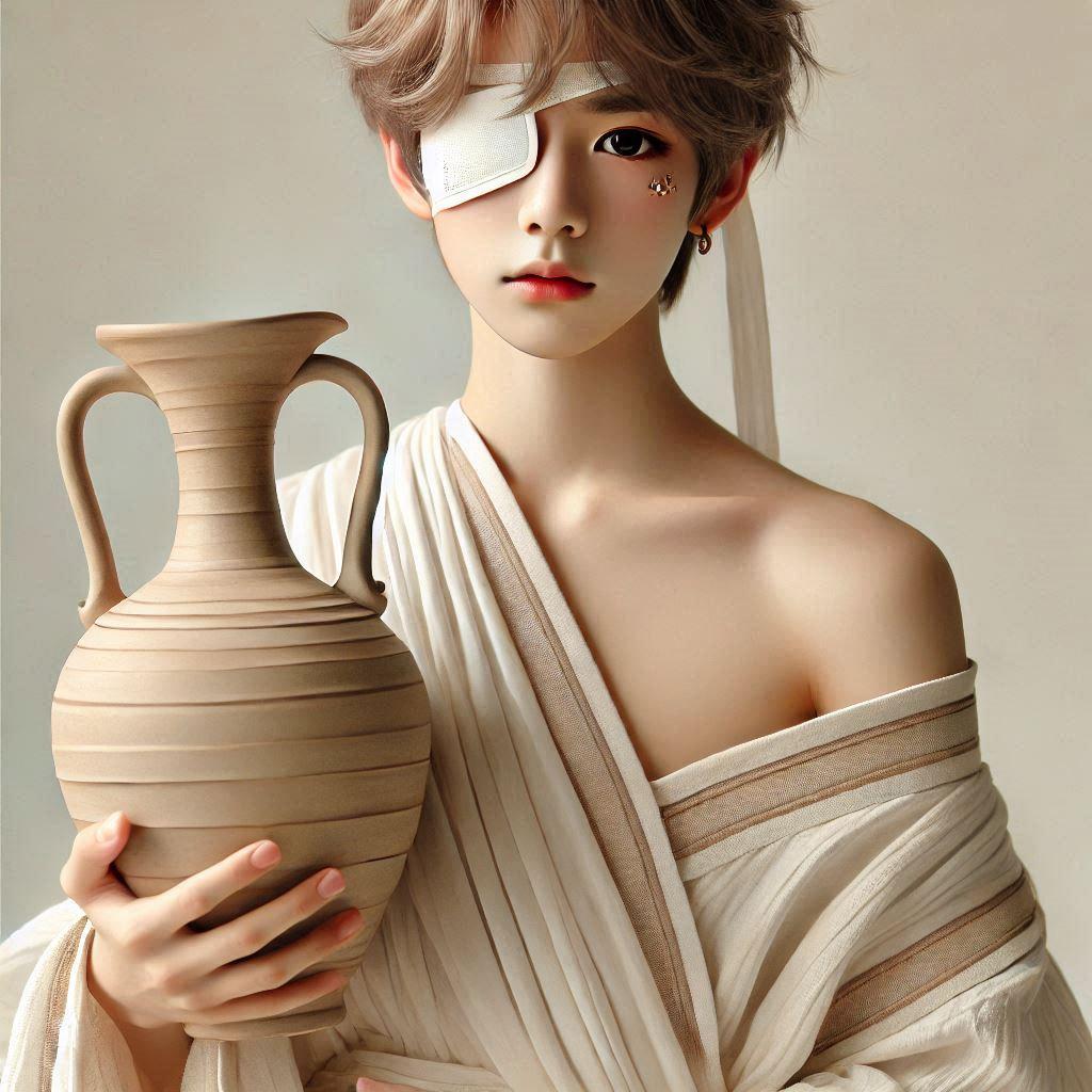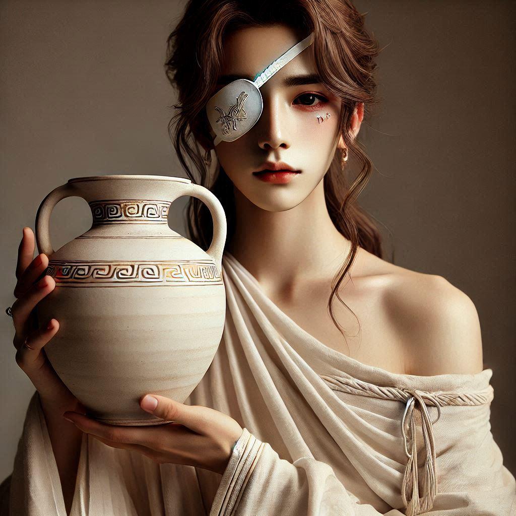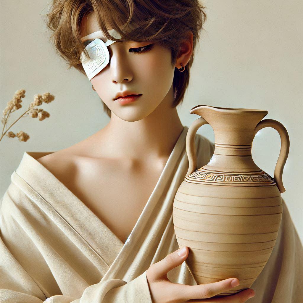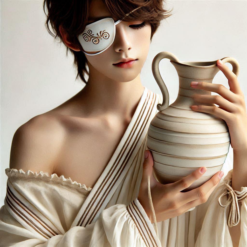 水瓶を捧げるオシャレ眼帯をつけた青年