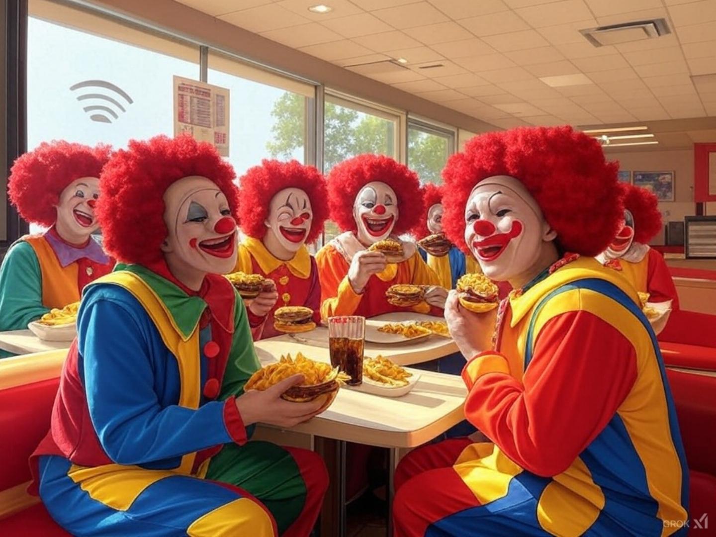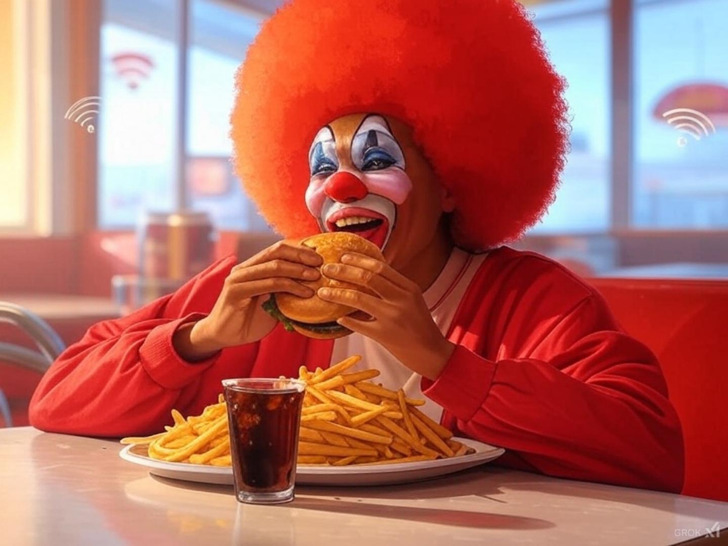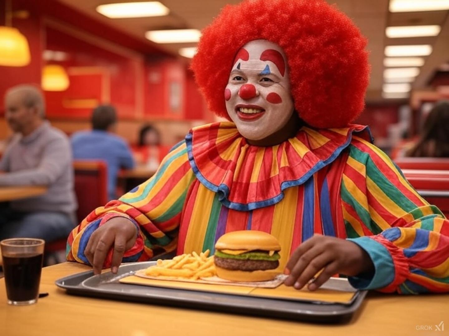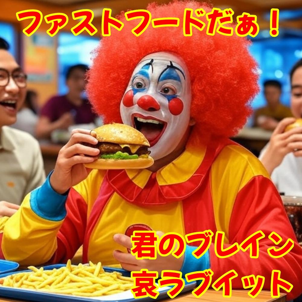 通常の人間すらも顔がヘンテコりんになってハンバーガーでお腹を満たせば