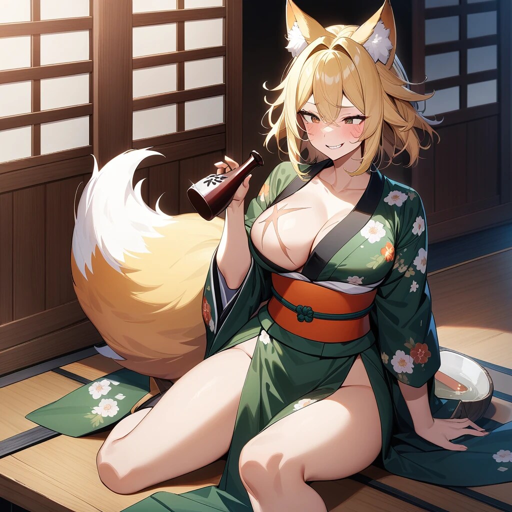 【SDXL移行練習】飲み過ぎて腰抜けた化け狐