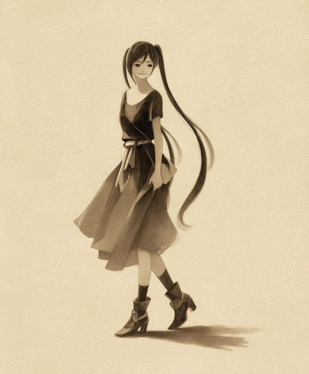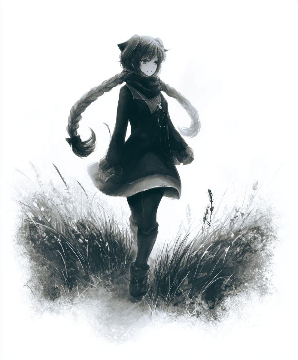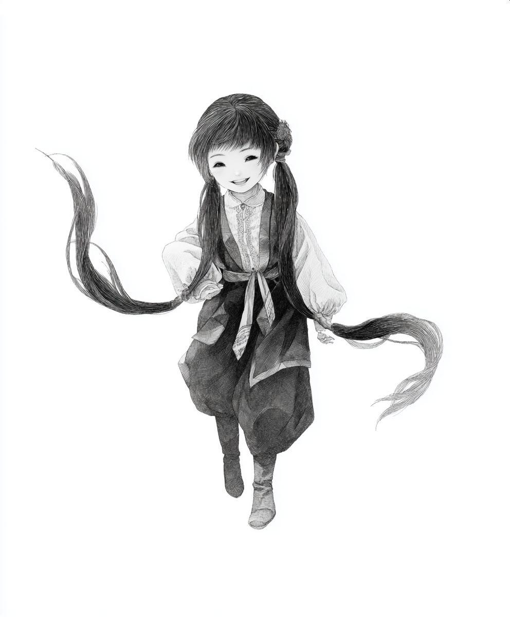 水墨画なら、髪の毛の色指定いらないなと気がついた。