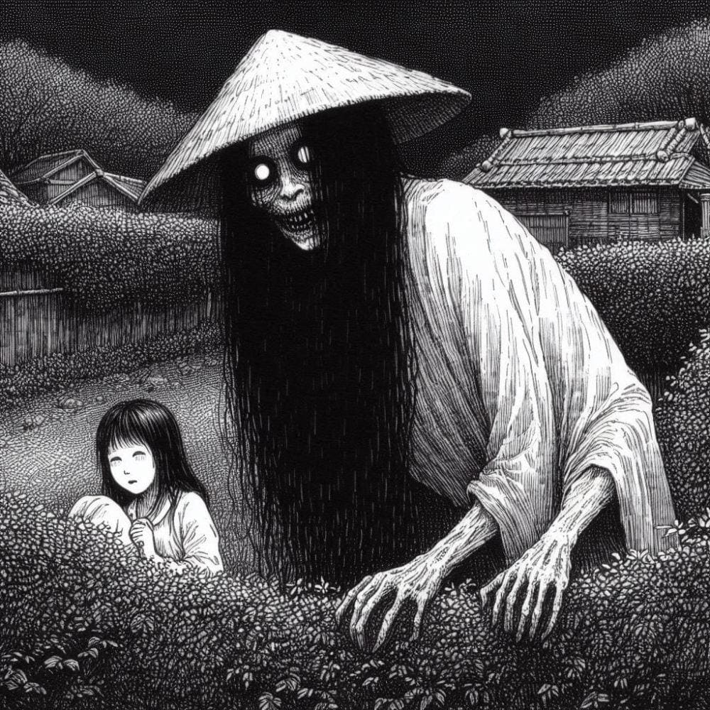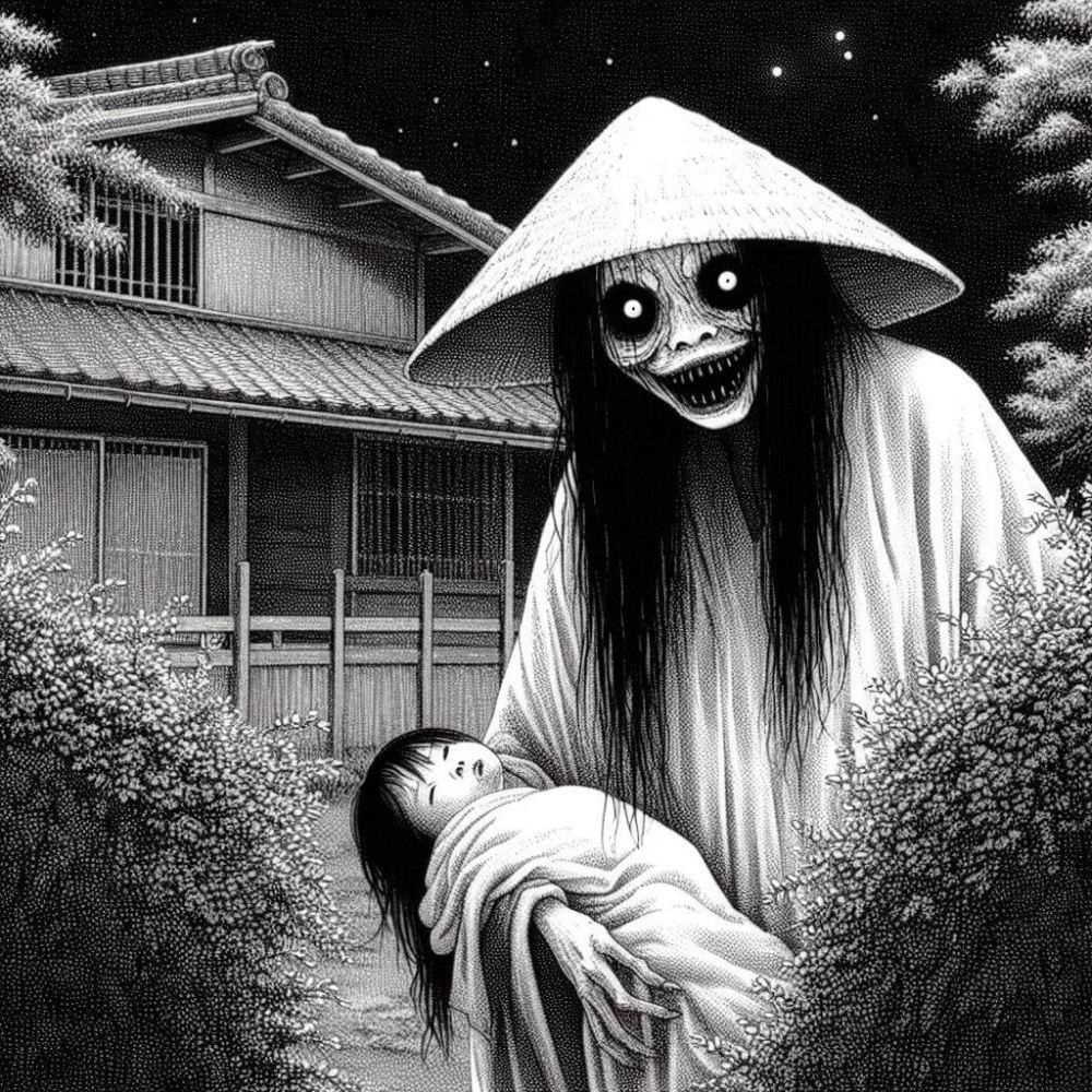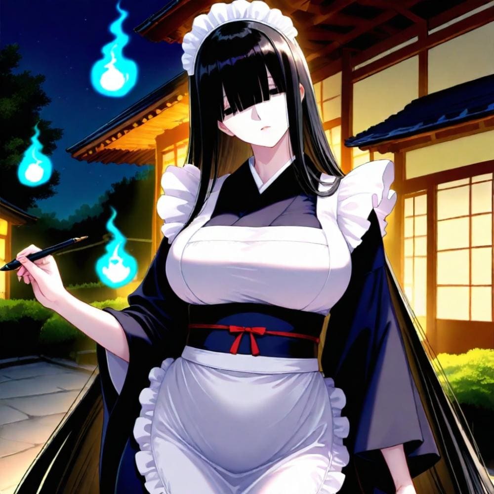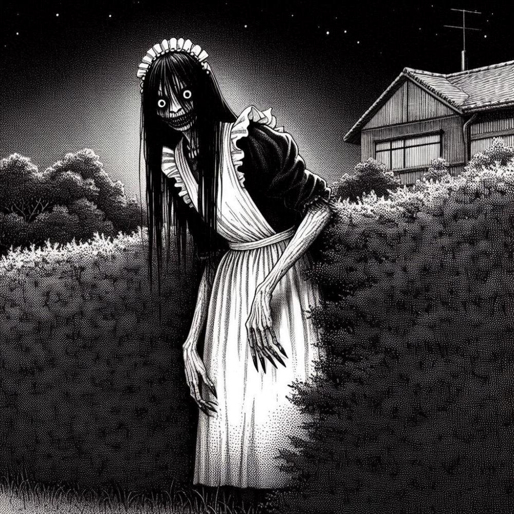 ホラーモノクロペン画風和メイドコスプレ人妻八尺様