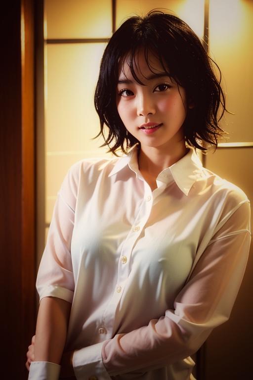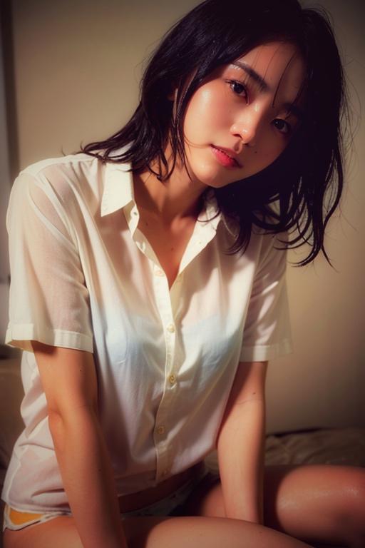 wet hair で濡れた髪の毛を表現できるのですが、もう少しずぶ濡れ感を出したかったので soak hair と表現してみましたが、機能しているようです。また、着衣についても wet clothes だけでなく see-though を併用することで色っぽさを追加しました。