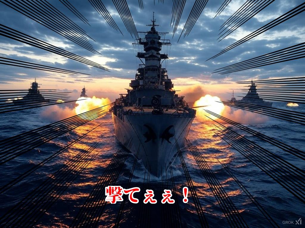 航空攻撃と砲撃、一糸乱れぬ、艦隊運用に、その場の将校および、中島ドクサイや中島正義たちは、彼らの働きに息をのんだ。