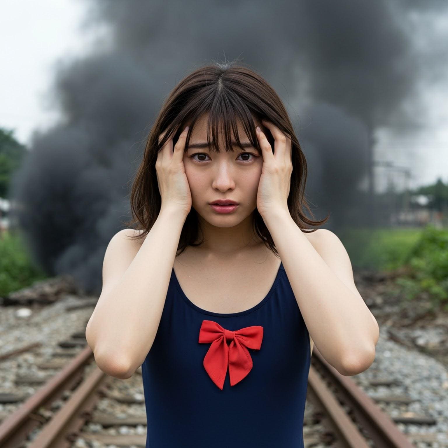 艶滑泡乃は、壊れた線路の前で途方に暮れるのだった。