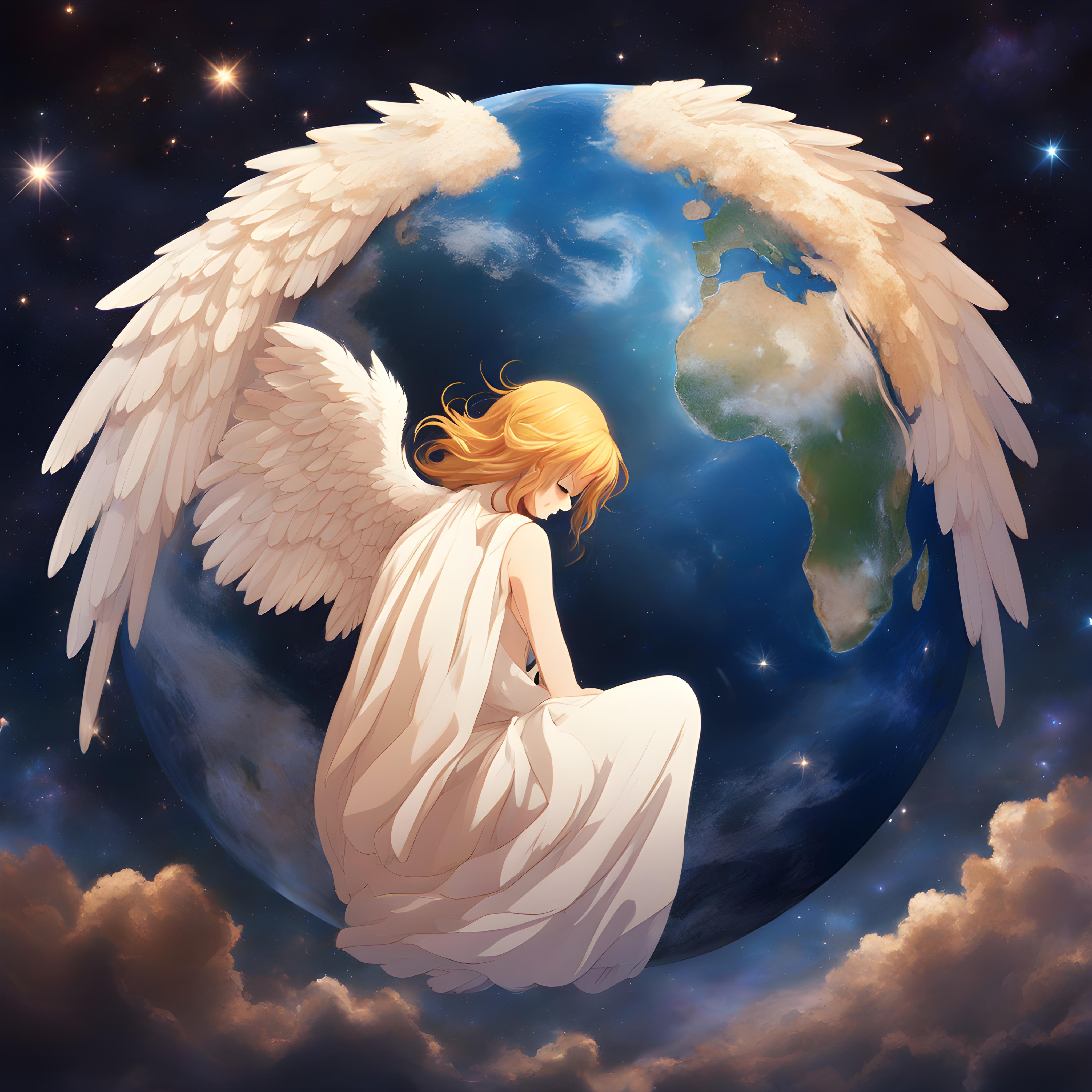 「宇宙空間に地球と天使かー。なかなかいい作品💓」