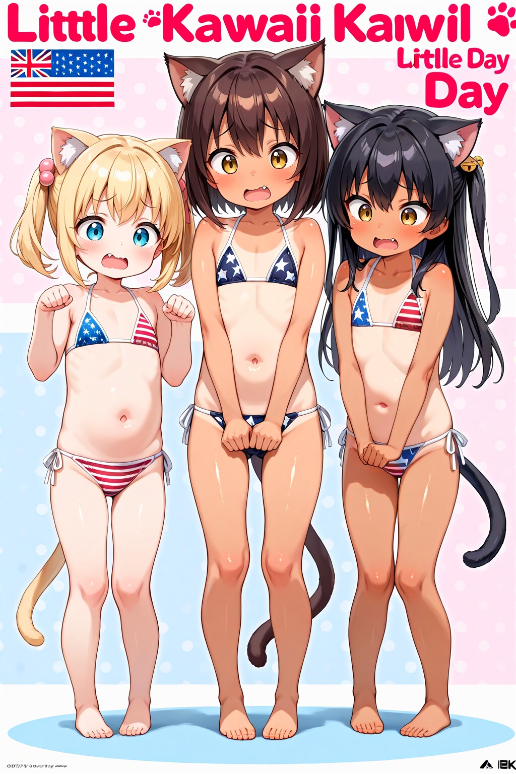 ぺたんこネコミミの星条旗ビキニ