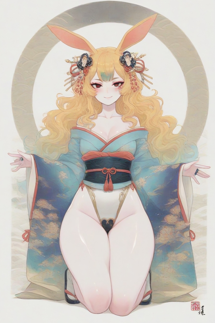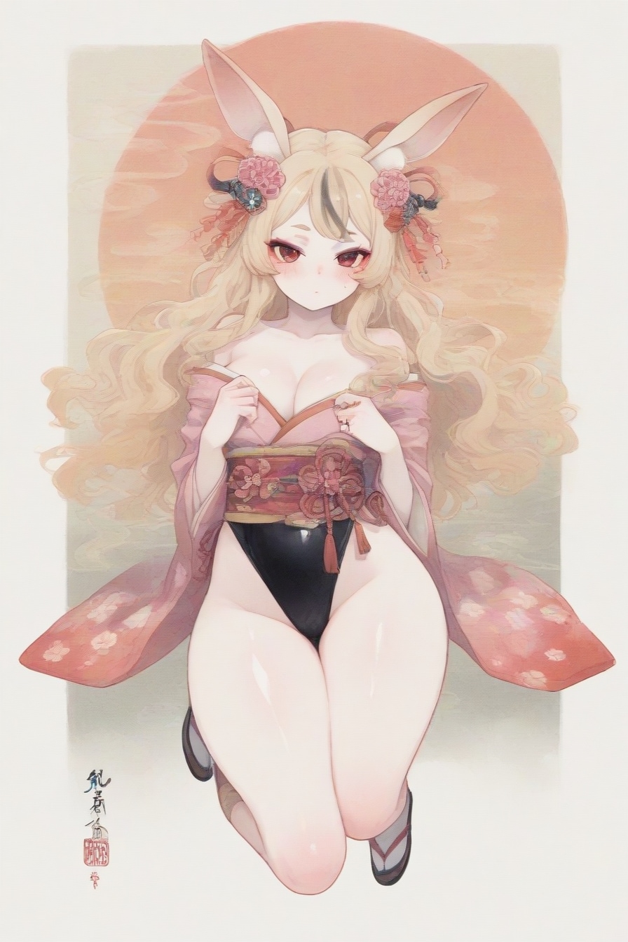 (R-15?版)日本画風?ハイレグ和装♪ギャル兎♪