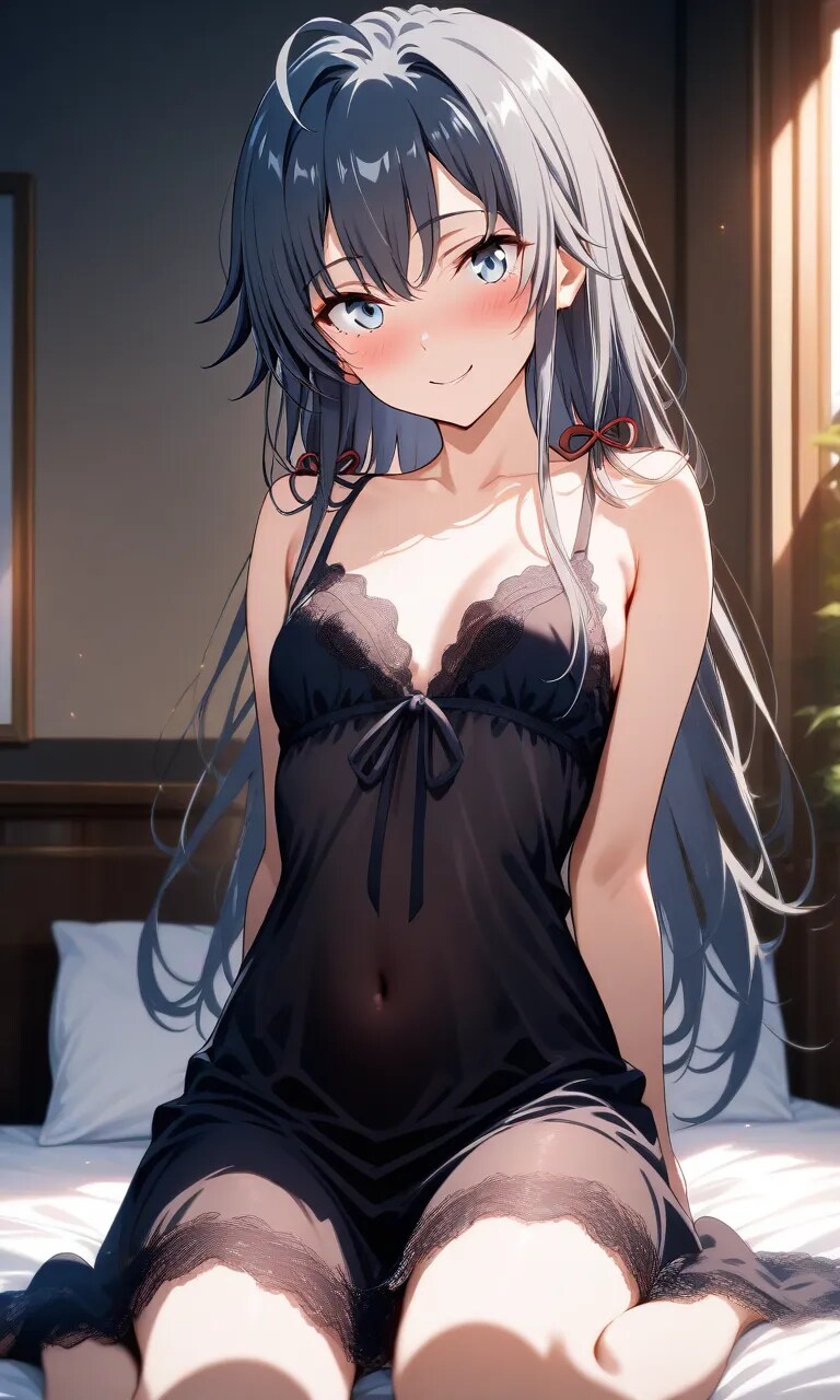 ネグリジェ🌃👗姿でベッド🛌に座る雪ノ下雪乃❄👩‍🎓