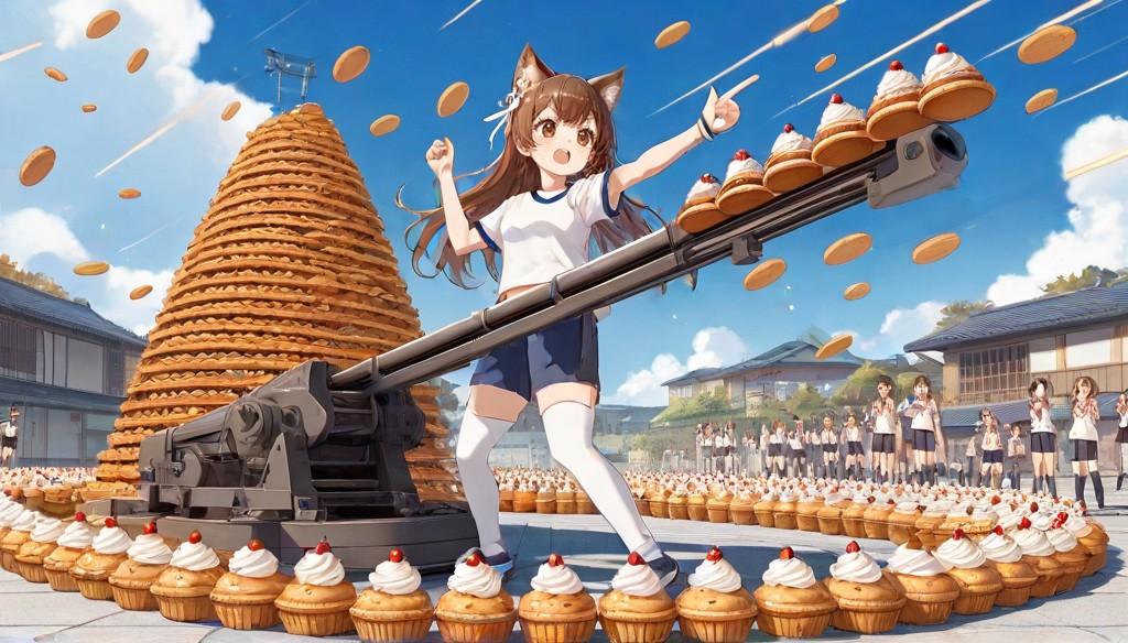 1枚目は、いつものmodelだと投げるどころかパイらしきも出なかったので別モデルで作成、ヒットするパイをDALLE3で作成しi2iしました。